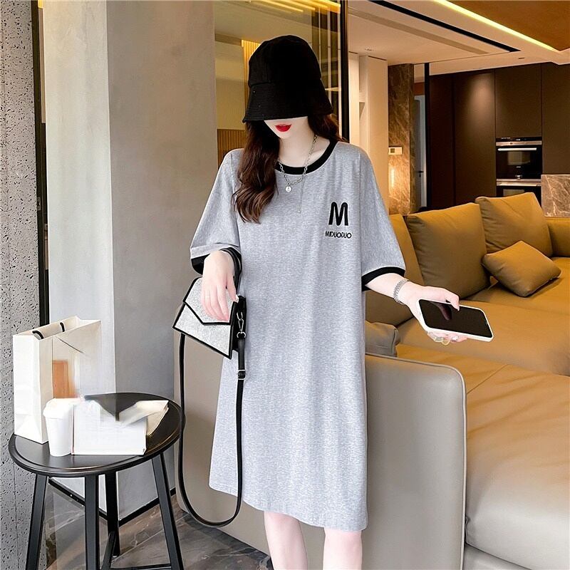 韓国 O ネックレタープリント Tシャツドレス女性の夏の黒特大ミニドレスパーティー綿 y2k ストレートドレス女性 ブラック コットン サマー 夏物 Oネック Aim52005197874