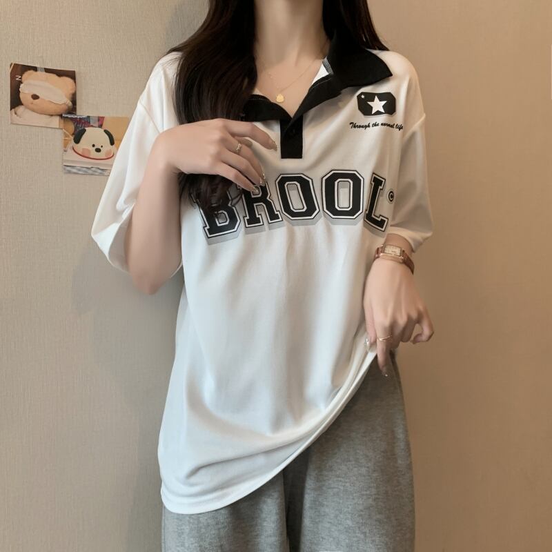 夏韓国スタイル半袖レタープリント tシャツ女性因果緩い綿 y2k トップス白 tシャツ原宿ストリート ショート ホワイト コットン ハーフスリーブ かわいい サマー 夏物 Aim34288670912