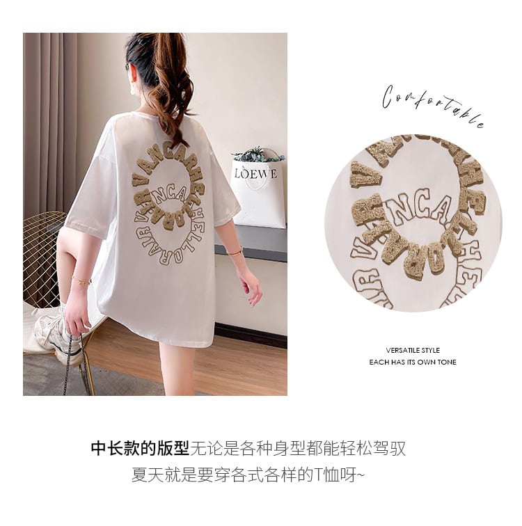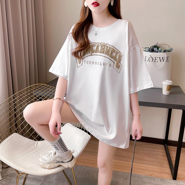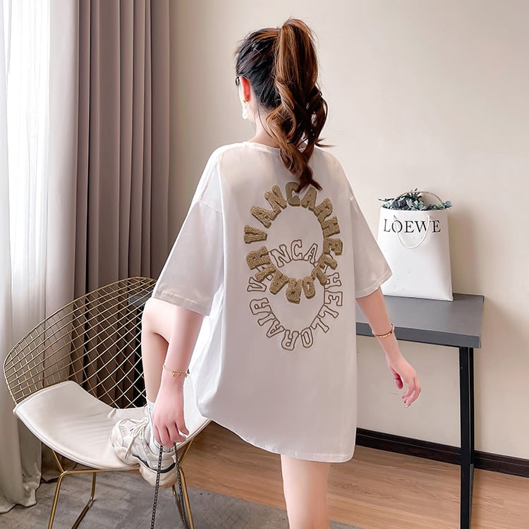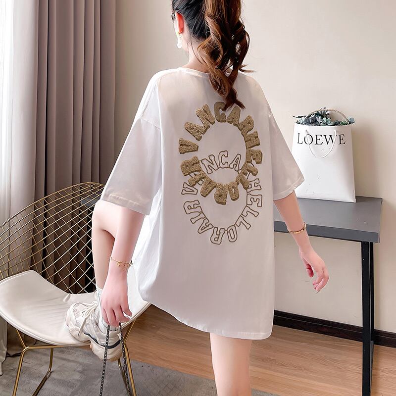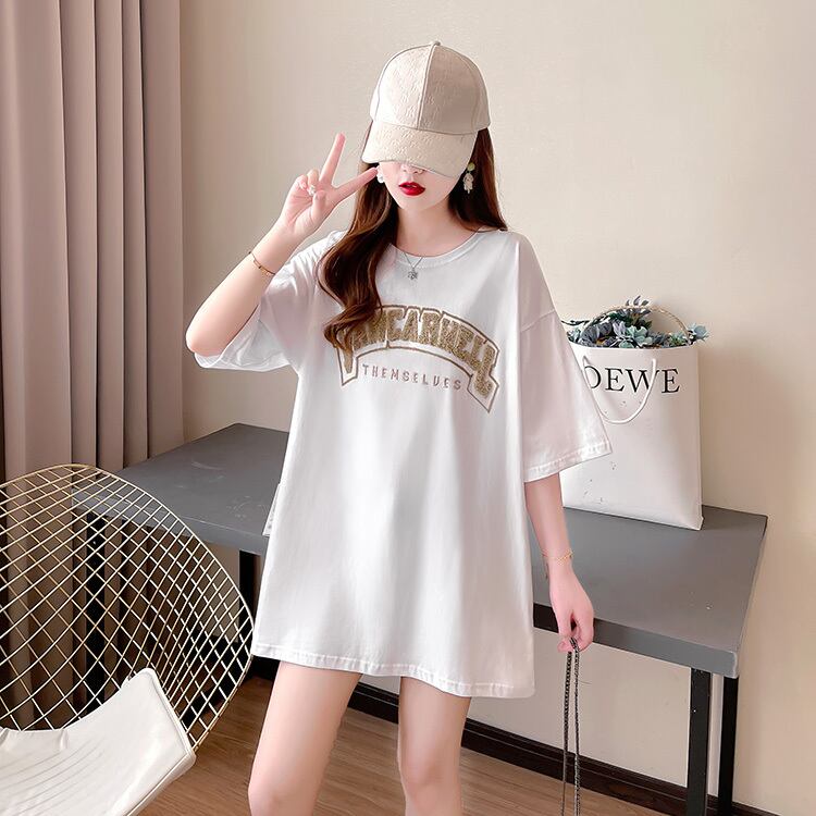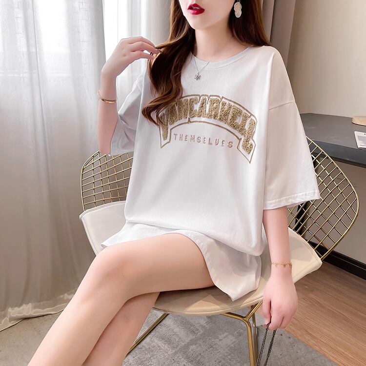 原宿 BF 文字刺繍半袖ロング Tシャツ女性の夏綿 100% ソフト Tシャツ特大ユニセックス服白トップス ショート ホワイト コットン ハーフスリーブ かわいい サマー 夏物 Aim86240164149
