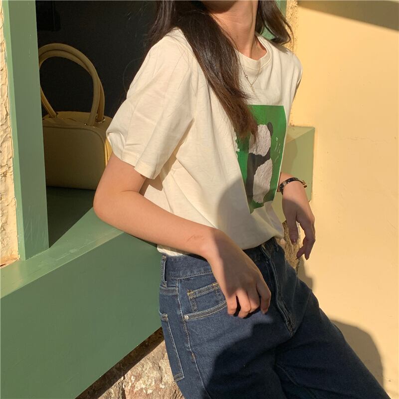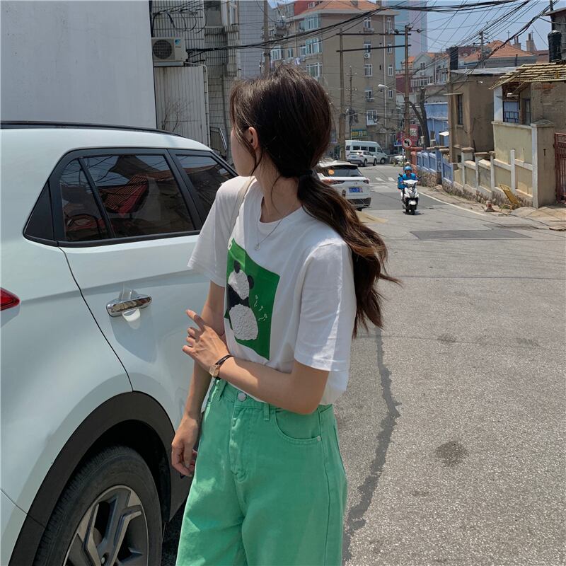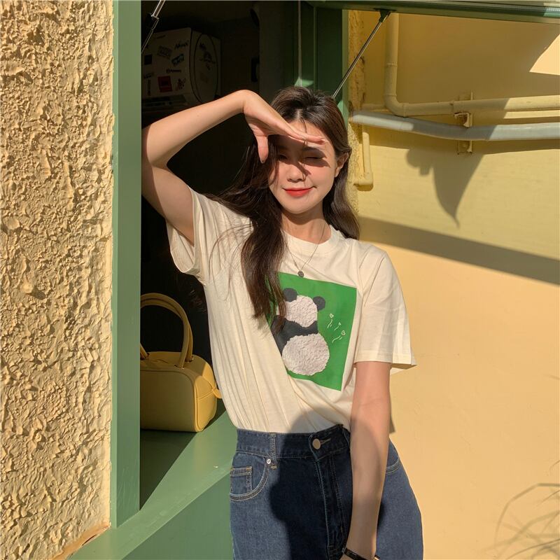 綿の女性の Tシャツ素敵なプリント漫画半袖カジュアルトップス夏スタイル Aprciot 白 Tシャツ ショート ホワイト コットン ハーフスリーブ サマー 夏物 かわいい Aim17439367807