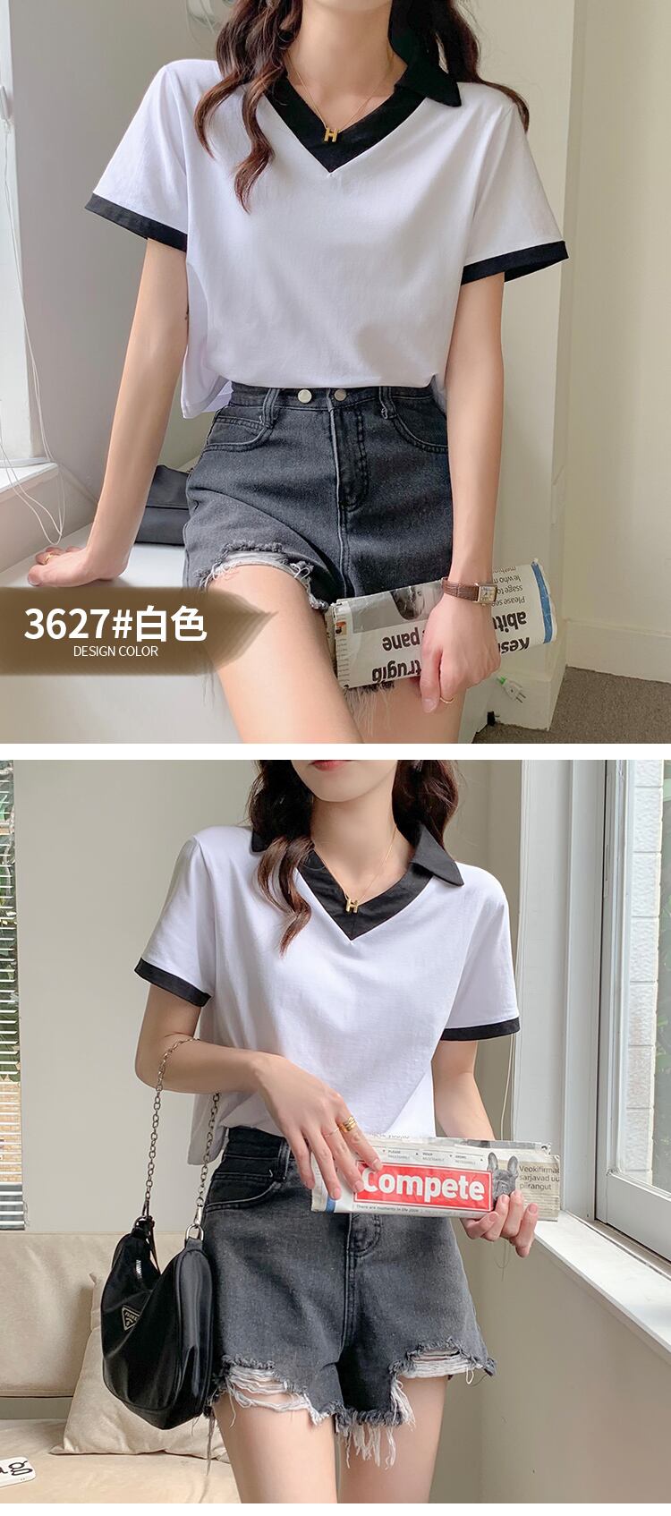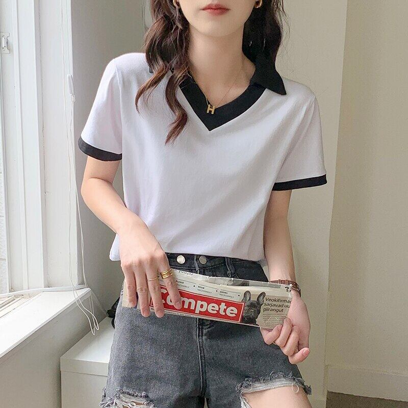 原宿クロップトップ純綿 Tシャツ女性の夏の V ネックセクシーなスリムパッチワーク半袖ソフト tシャツ女性服 ショート コットン ハーフスリーブ かわいい サマー 夏物 Vネック ピュア Aim41737231910