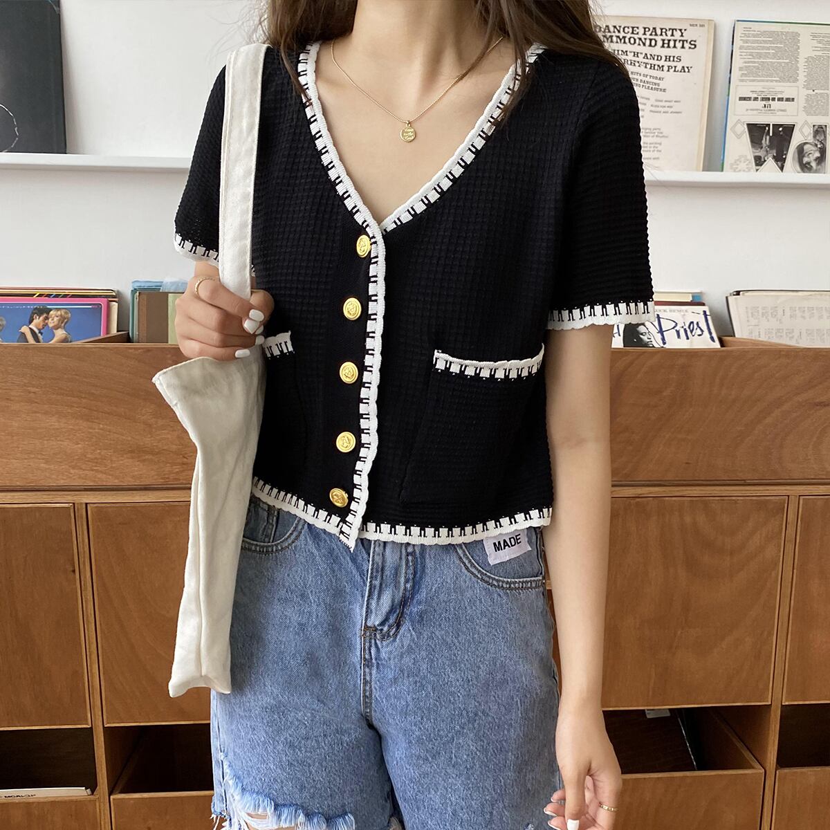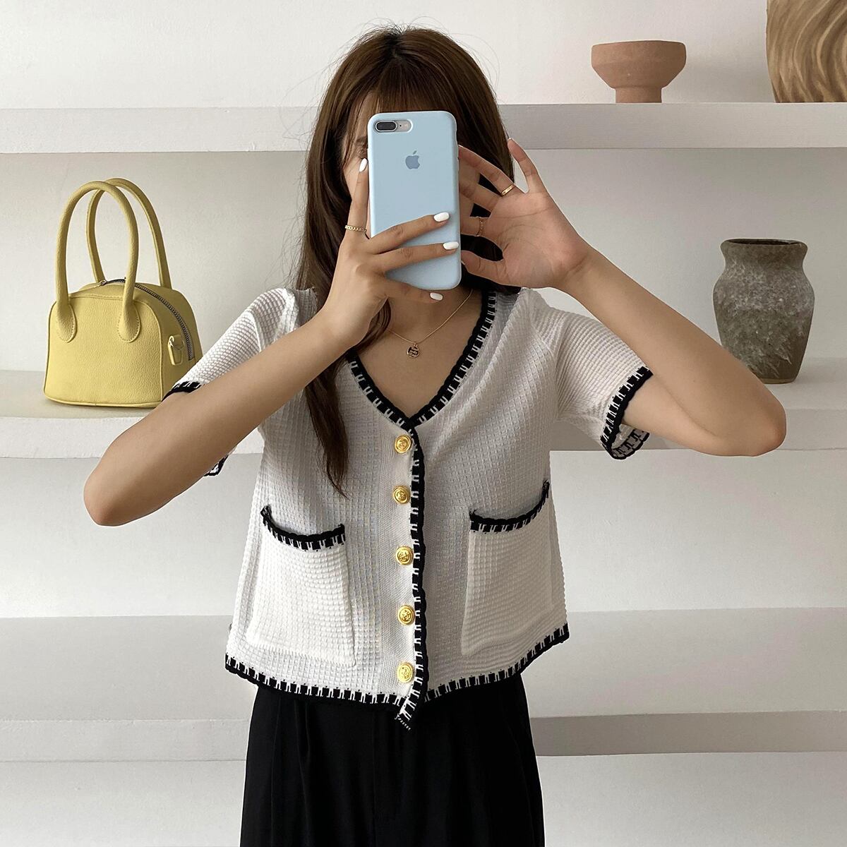 女性オールマッチソリッドショートニットセーター夏薄型スリム半袖 V ネックニットカーディガンクロップトップ ハーフスリーブ サマー 夏物 Vネック ソリッドカラー Aim28261184918