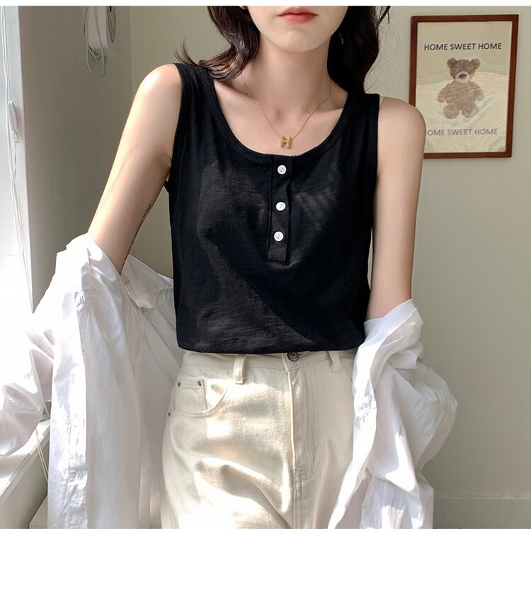 夏純綿セクシーなゴスボタンベスト Tシャツ O ネックスリム y2k トップノースリーブソリッド Tシャツ基本タンク コットン サマー 夏物 Oネック ピュア ソリッドカラー