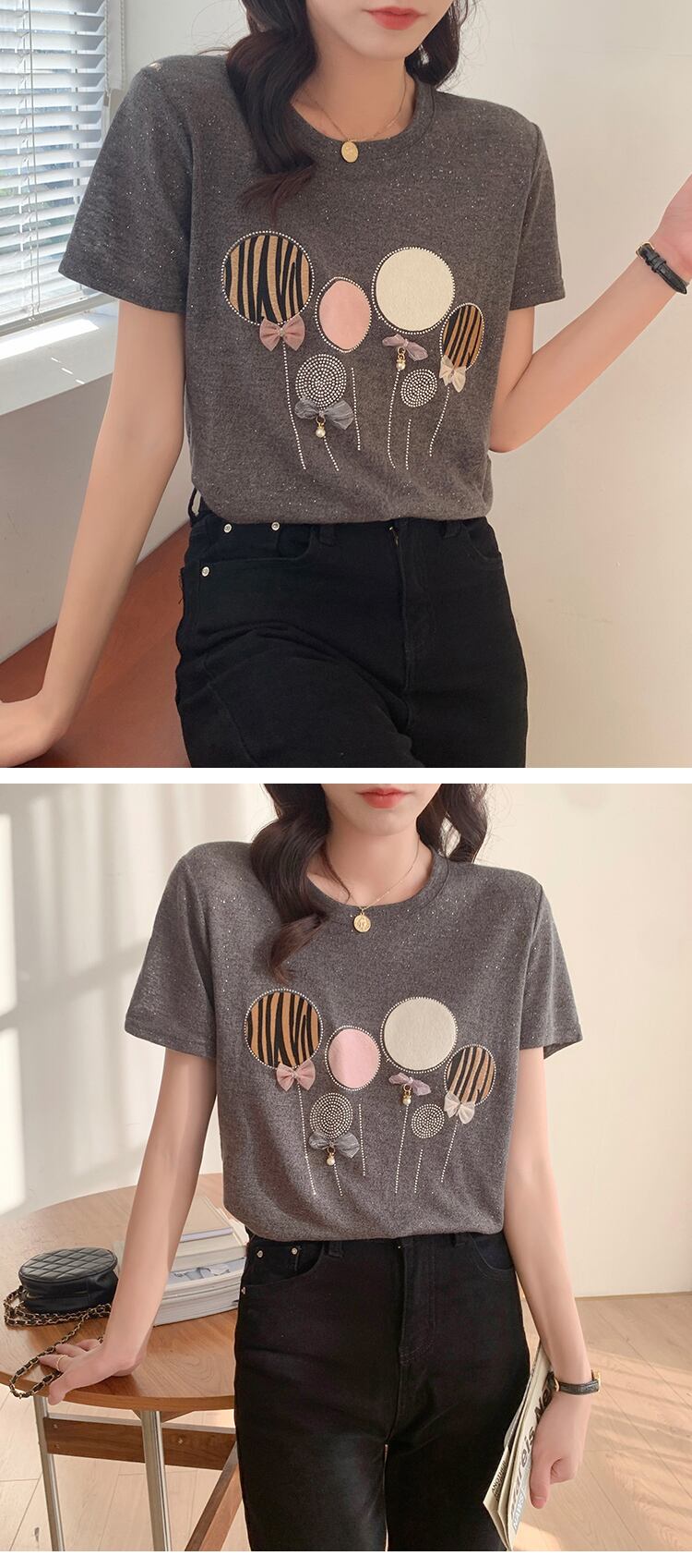 純粋な綿のの tシャツ半袖ルーズ Tシャツグラフィックダイヤモンド刺繍 tシャツピンク y2k トップス夏服 ショート コットン ハーフスリーブ サマー 夏物