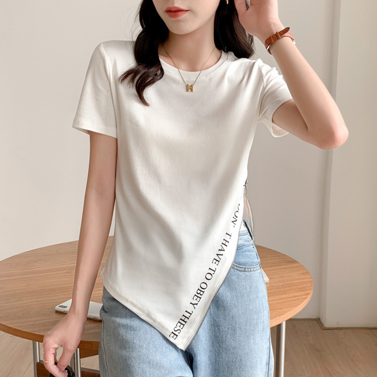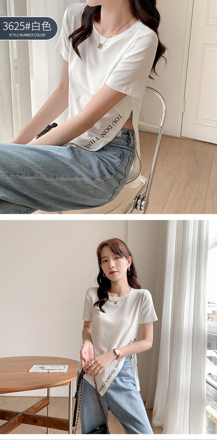 夏ののサイドスプリット Tシャツ O ネック半袖純綿カジュアルスリムレター Tシャツ原宿白黒 y2k トップ ショート ホワイト ブラック コットン ハーフスリーブ かわいい サマー 夏物 Oネック ピュア