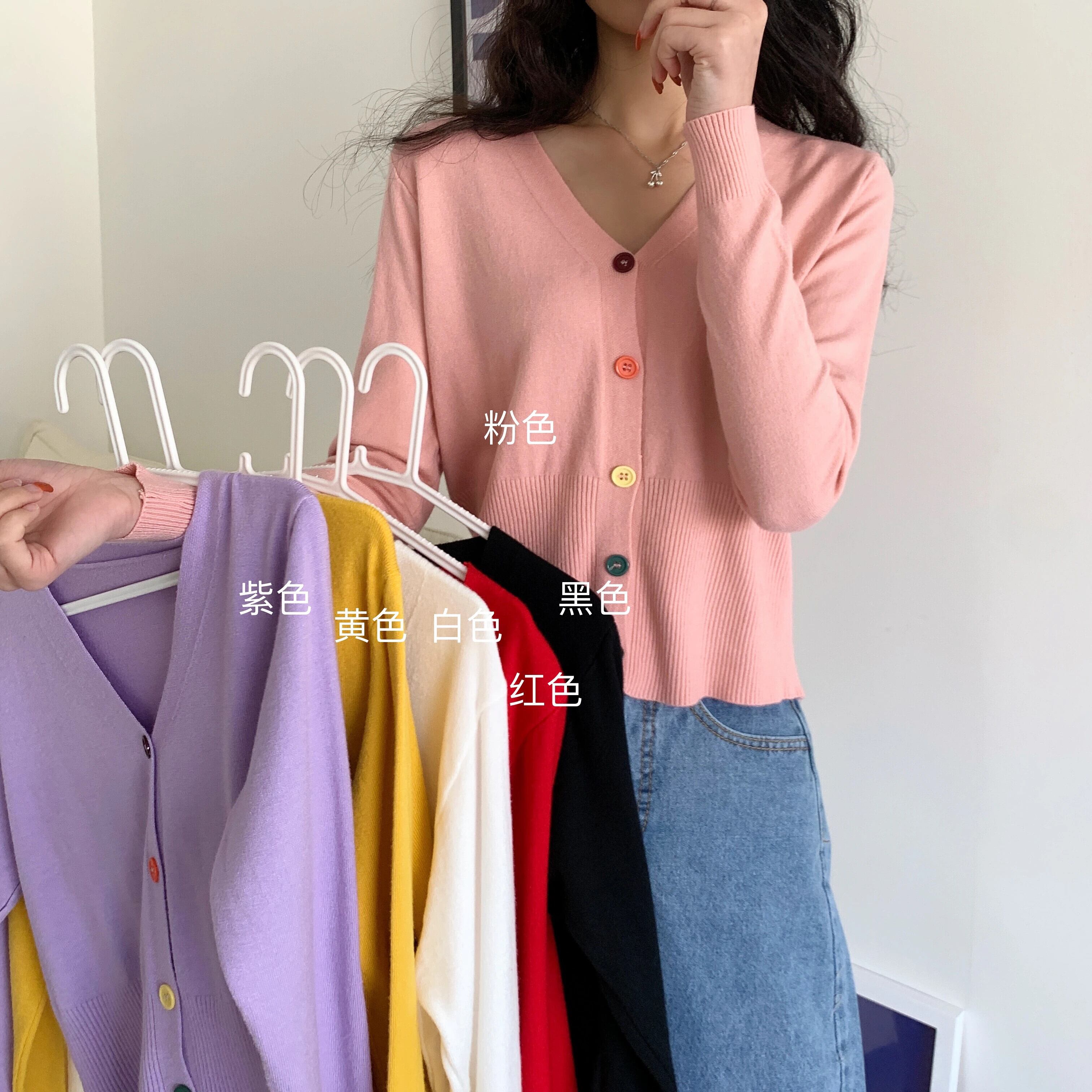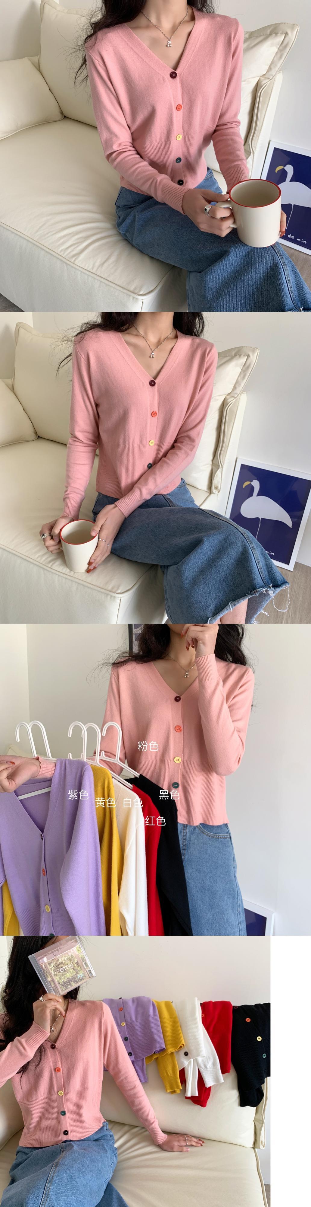 ソリッドスリムニットクロップドカーディガン V ネックカーディガンシングルブレスト свитер 長袖セーター кардиган женский ロング Vネック ソリッドカラー