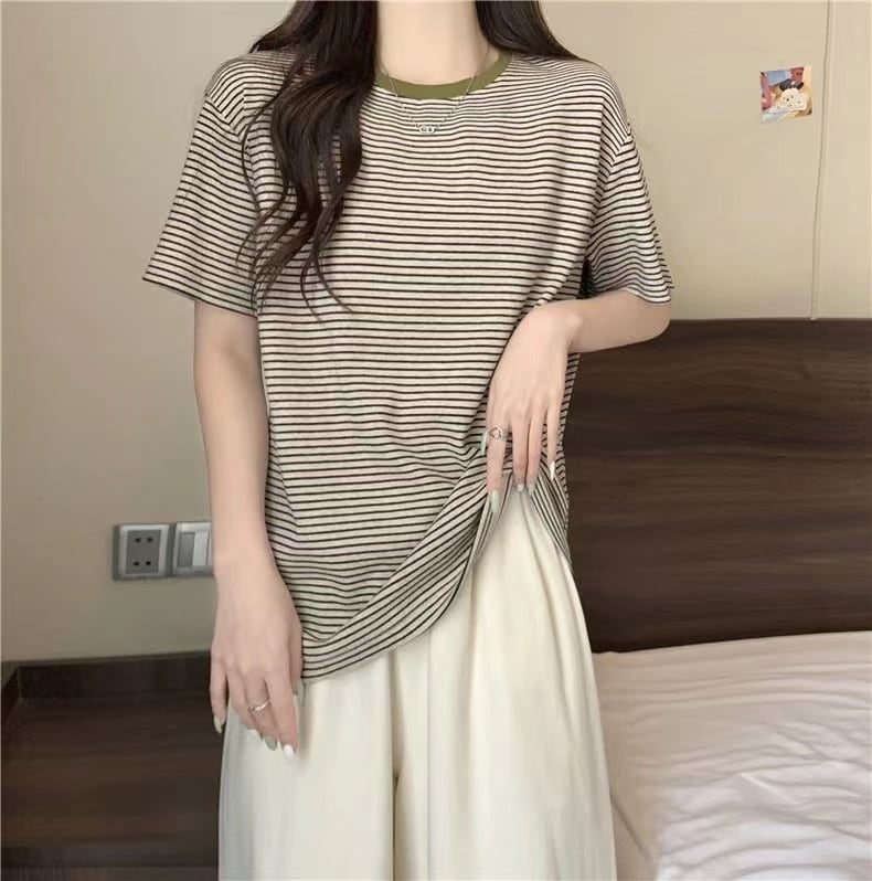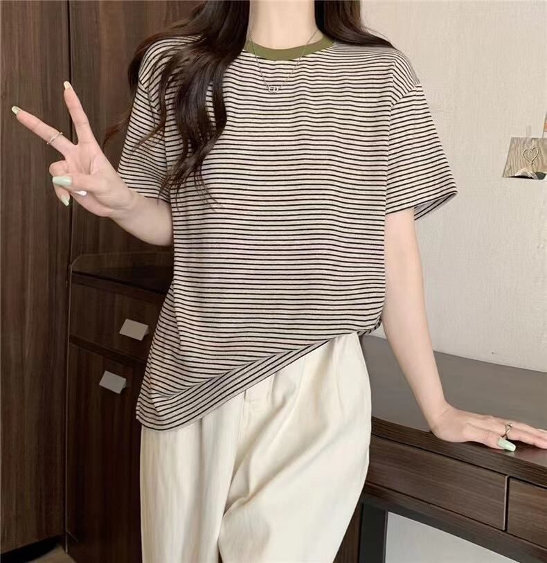 ファッション純綿グラフィック Tシャツオールマッチストライプカジュアルルーズ y2k トップス夏原宿半袖 tシャツ服 コットン かわいい サマー 夏物 ピュア