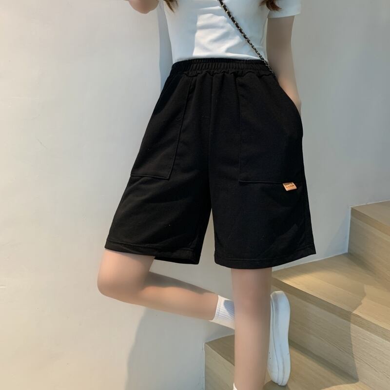 原宿ソリッドウエストスウェットショーツビーチショーツ Y2k ルーズ原宿黒ストリートショーツ ブラック かわいい ブルマー ソリッドカラー