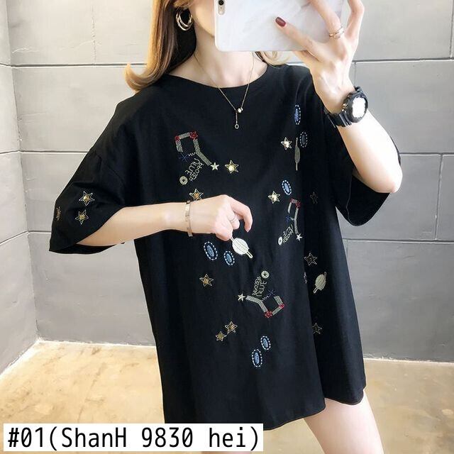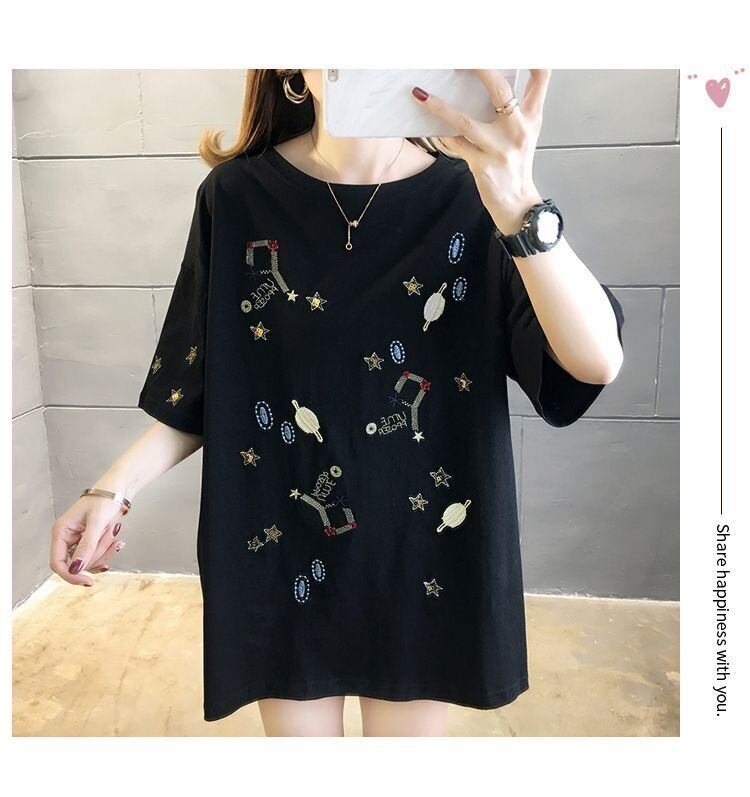 韓国綿特大半袖 Tシャツ夏グラフィック刺繍 tシャツ黒 y2k トップスストリート ショート ブラック コットン ハーフスリーブ サマー 夏物