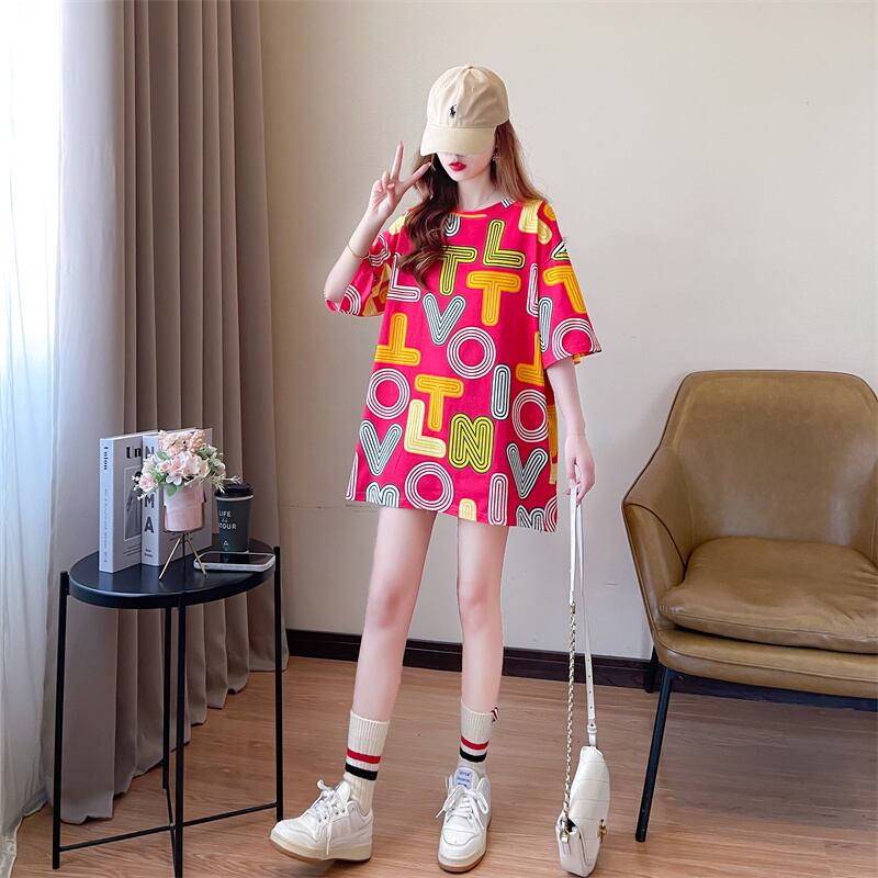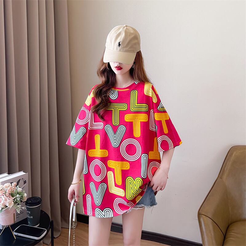 夏レタープリント Tシャツ Clics y2k トップ O ネック Tシャツ半袖特大 Tシャツ ショート ハーフスリーブ サマー 夏物 Oネック