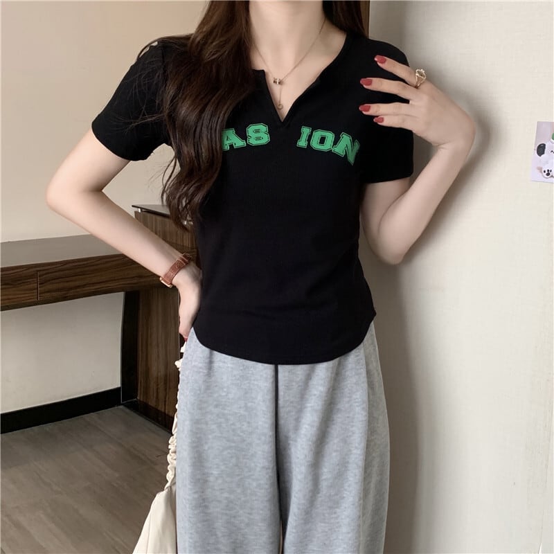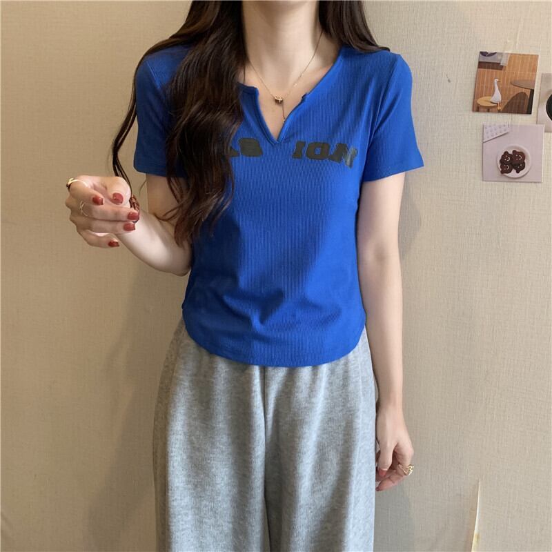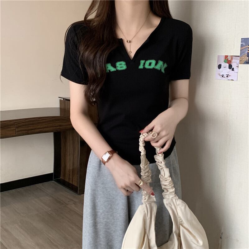 サマーレター 底入れ Tシャツ 原宿 半袖 クロップトップス 純綿 服 カジュアル スリム y2k トップ ストリート ショート コットン ハーフスリーブ かわいい 夏物 ピュア