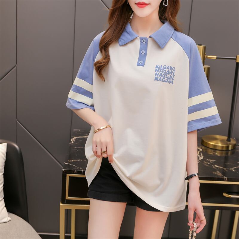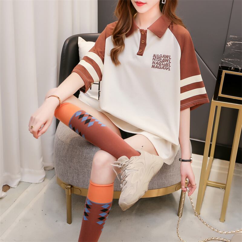 プレッピースタイル綿スペルカラーレタープリント Tシャツカジュアル特大 Tシャツ半袖トップス学生 Tシャツ ショート コットン ハーフスリーブ