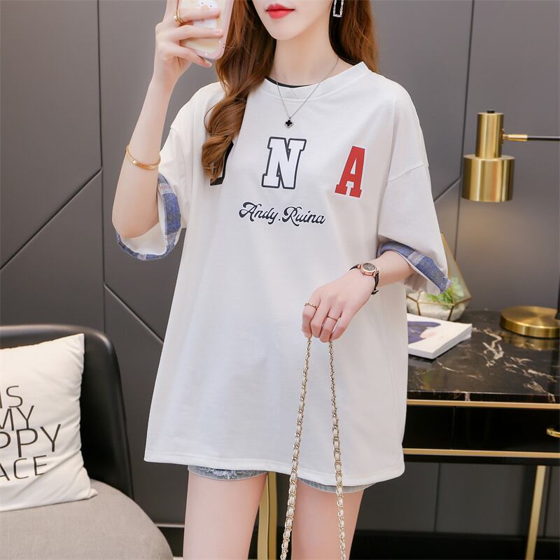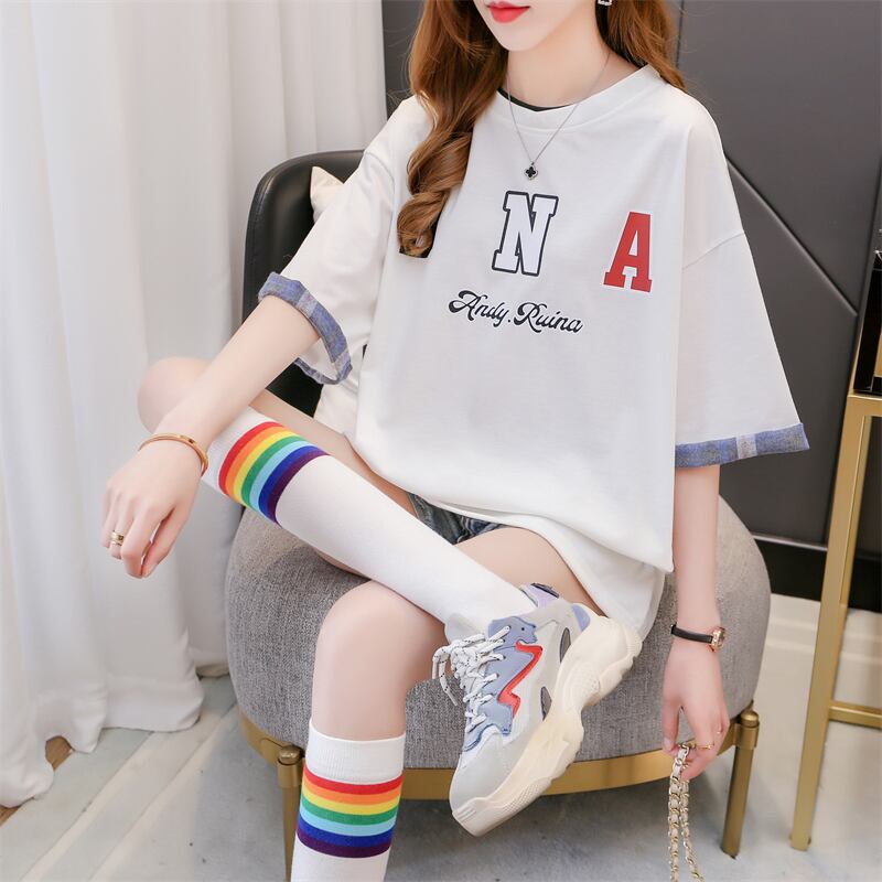 夏レタープリント tシャツプレッピースタイル綿半袖 tシャツ学生カジュアル特大白トップス服 ショート ホワイト コットン ハーフスリーブ サマー 夏物