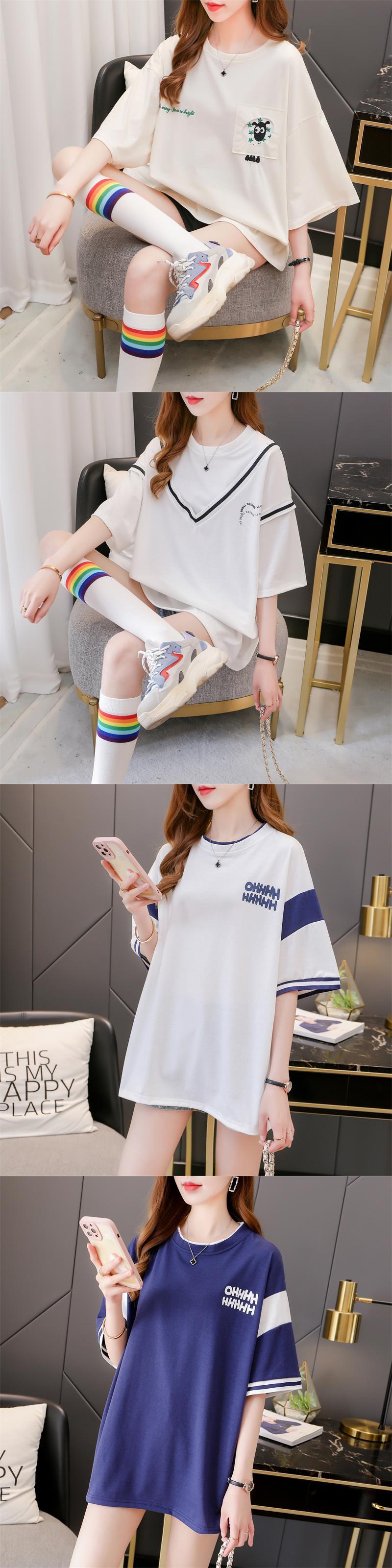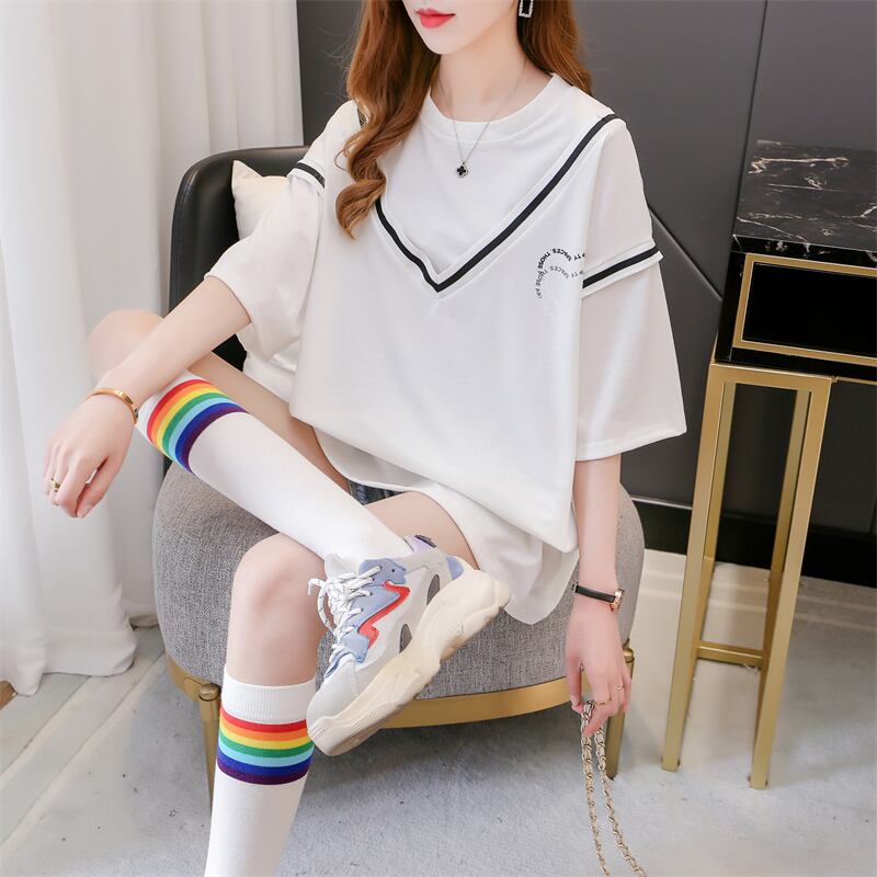 夏コットンスペルカラー Tシャツカジュアル特大 Tシャツ半袖 y2k トップス学生フェイク二枚 Tシャツ ショート ハーフスリーブ サマー 夏物