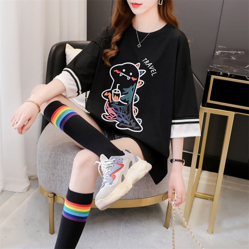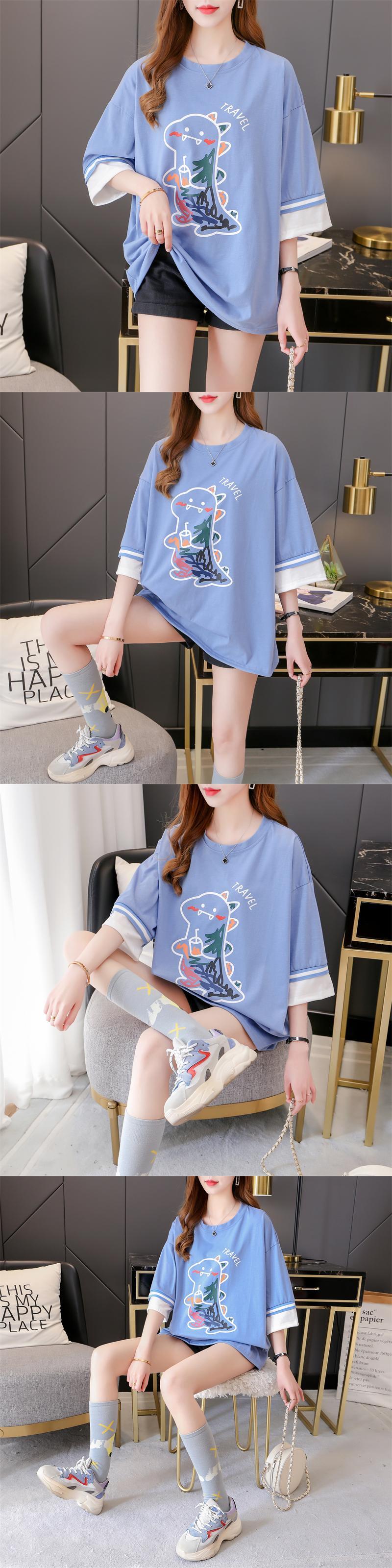 綿面白い漫画 tシャツ学生ブルー tシャツ原宿 y2k トップスストリート特大 tシャツ コットン かわいい