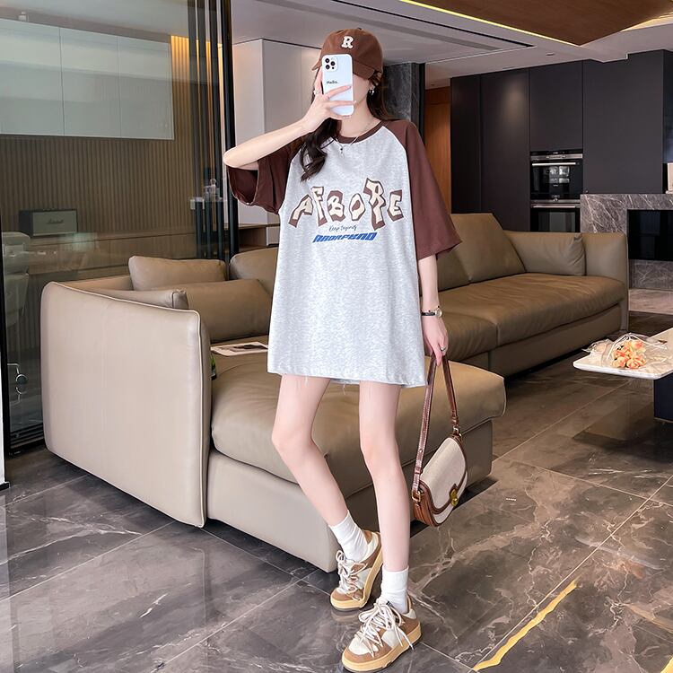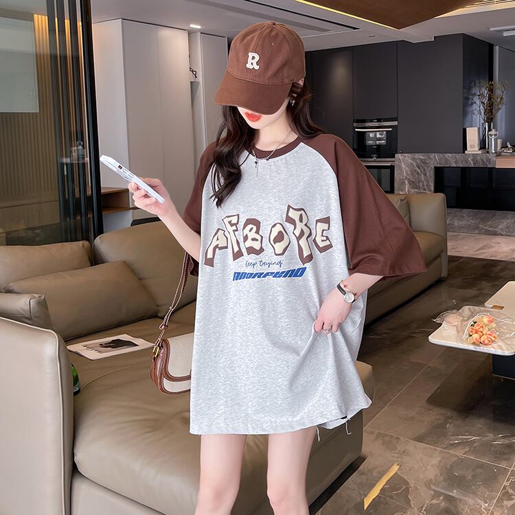 夏因果特大手紙綿 tシャツ大サイズ韓国スタイルカラーステッチ半袖 tシャツストリート ショート コットン ハーフスリーブ 大きめサイズ サマー 夏物