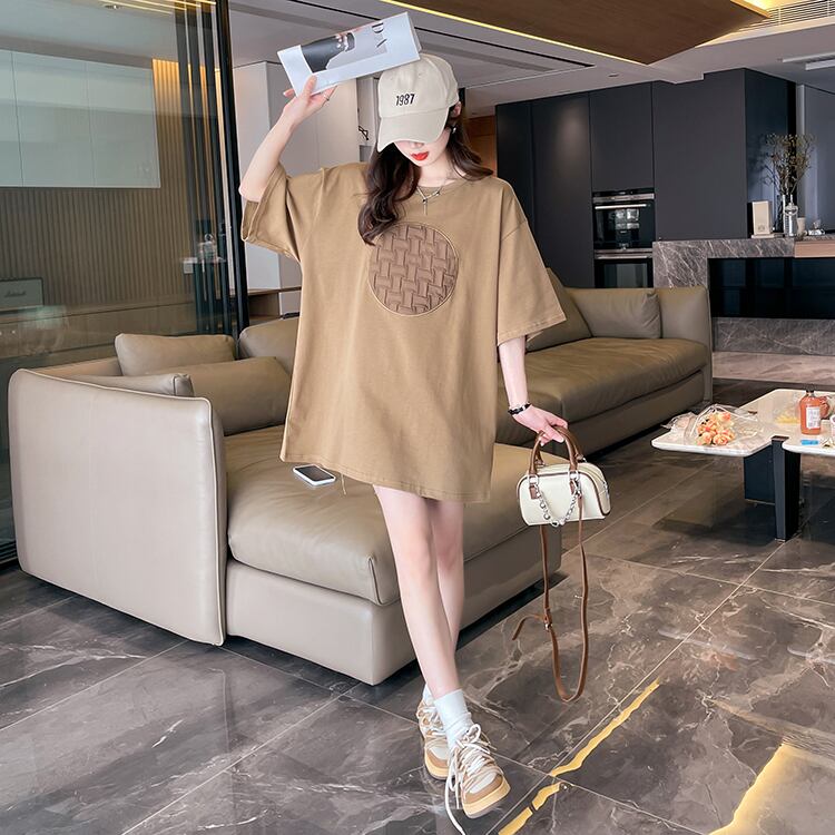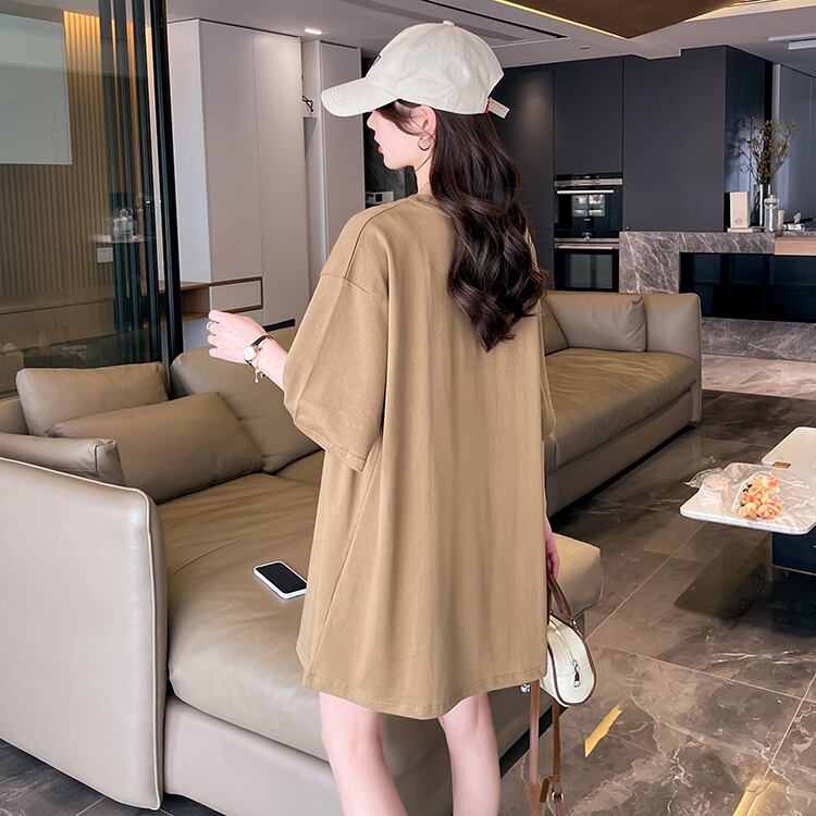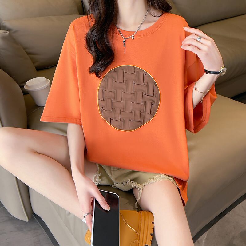夏 y2k シンプル O ネック綿ロング Tシャツ特大刺繍ベーシック Tシャツ y2k トップスストリート コットン サマー 夏物 Oネック
