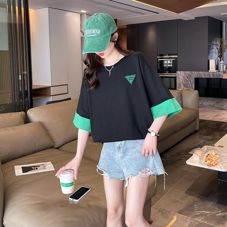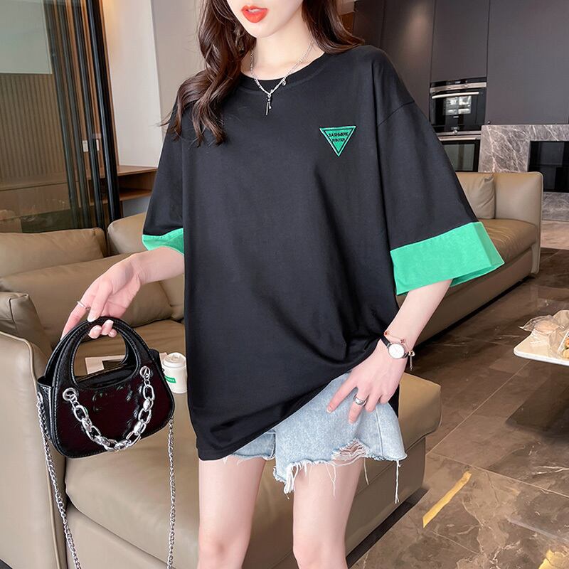 コットン カラー ブロック グラフィック tシャツ ブラック tシャツ原宿 y2k トップス ストリート オーバーサイズ tシャツ レディース かわいい