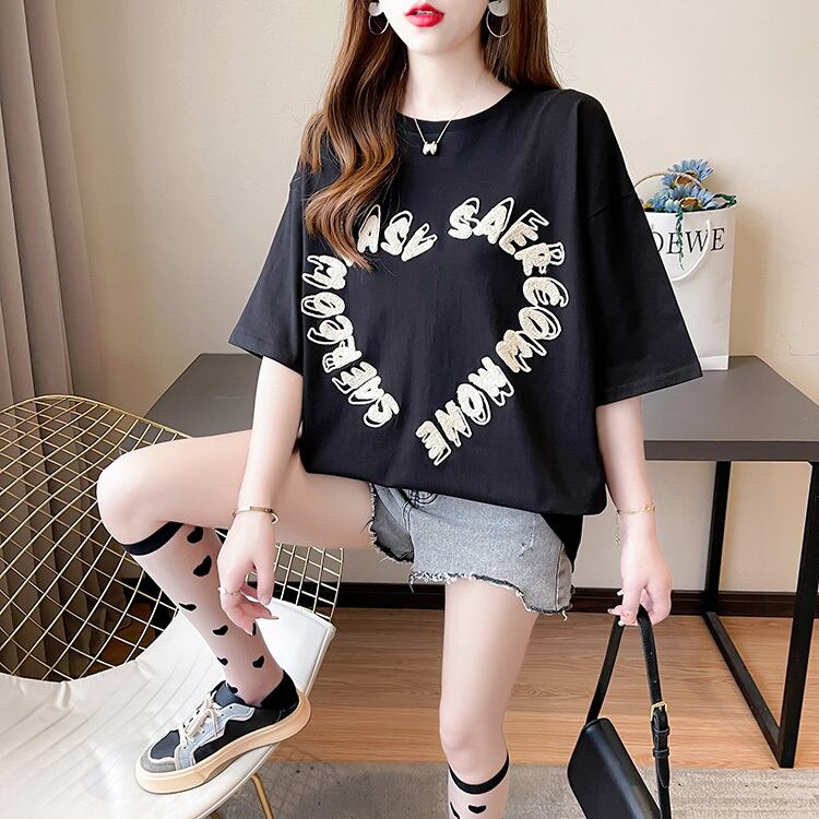 夏大サイズ y2k トップ韓国スタイル半袖 tシャツ因果特大 3d 手紙純粋綿 tシャツストリート ショート コットン ハーフスリーブ 大きめサイズ サマー 夏物 ピュア