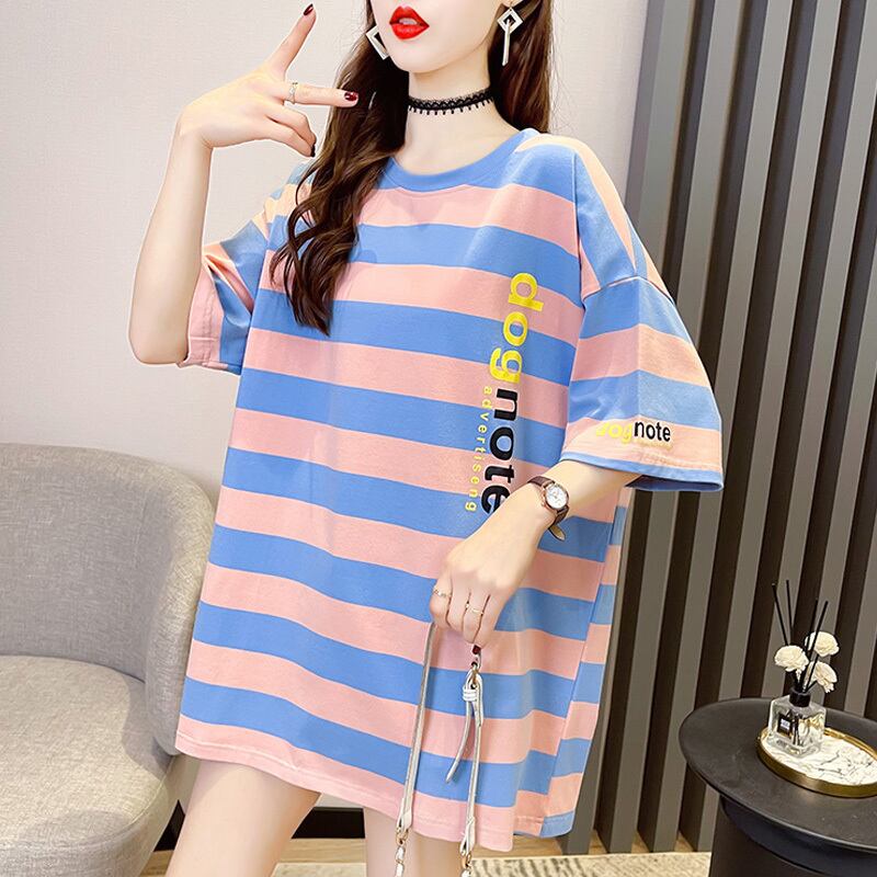 夏韓国半袖レインボーストライプ tシャツ原宿因果特大綿 y2k トップグラフィック tシャツストリート ショート コットン ハーフスリーブ かわいい サマー 夏物
