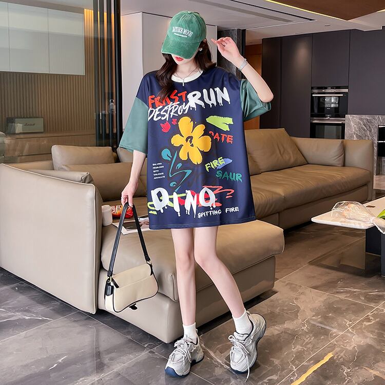 夏韓国半袖グラフィックレタープリント tシャツ因果特大 y2k トップカラーブロック tシャツ原宿ストリート ショート ハーフスリーブ かわいい サマー 夏物