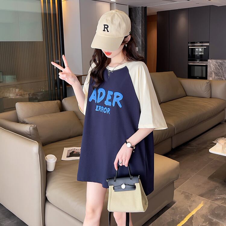 サマーレタープリントホワイトTシャツコットンカラーステッチベーシック半袖Tシャツ特大ストリートy2kトップス 夏物