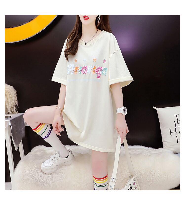 夏純綿 Tシャツ原宿特大 y2k トップススター刺繍 Camisetas O ネックゴス Tシャツ Tシャツ コットン かわいい サマー 夏物 Oネック ピュア