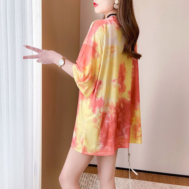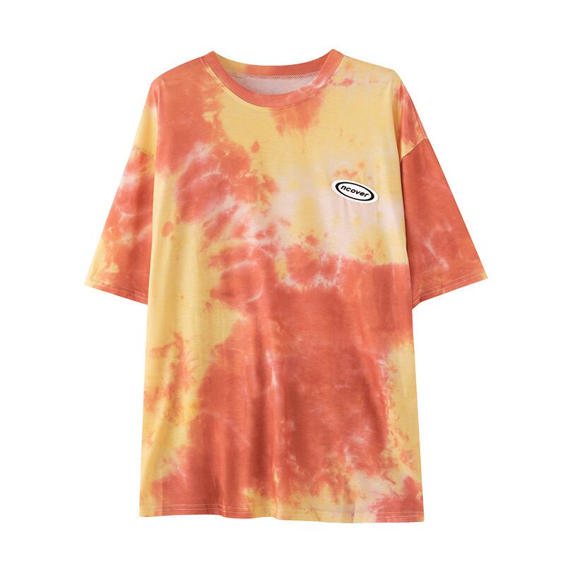 夏韓国絞り染めロング tシャツユニセックスストリート綿半袖 tシャツカジュアル特大 y2k トップス服 ショート コットン ハーフスリーブ サマー 夏物