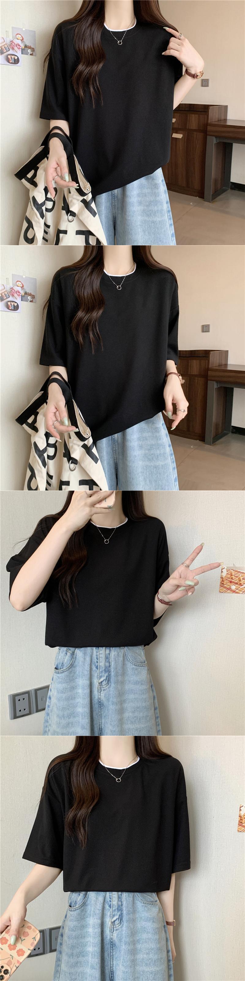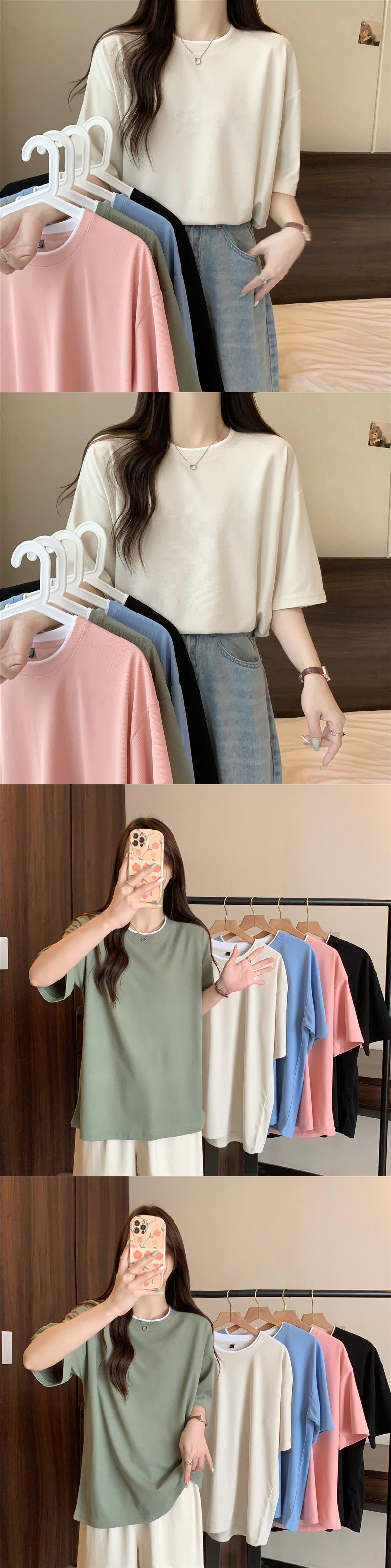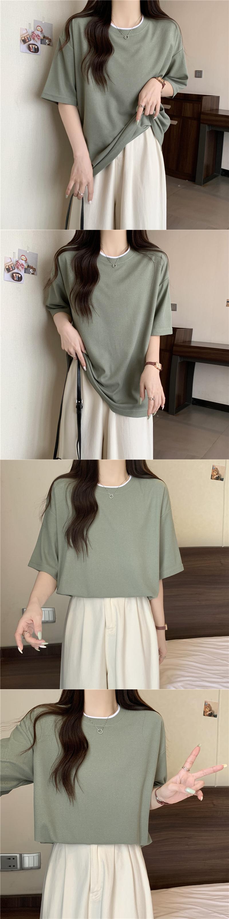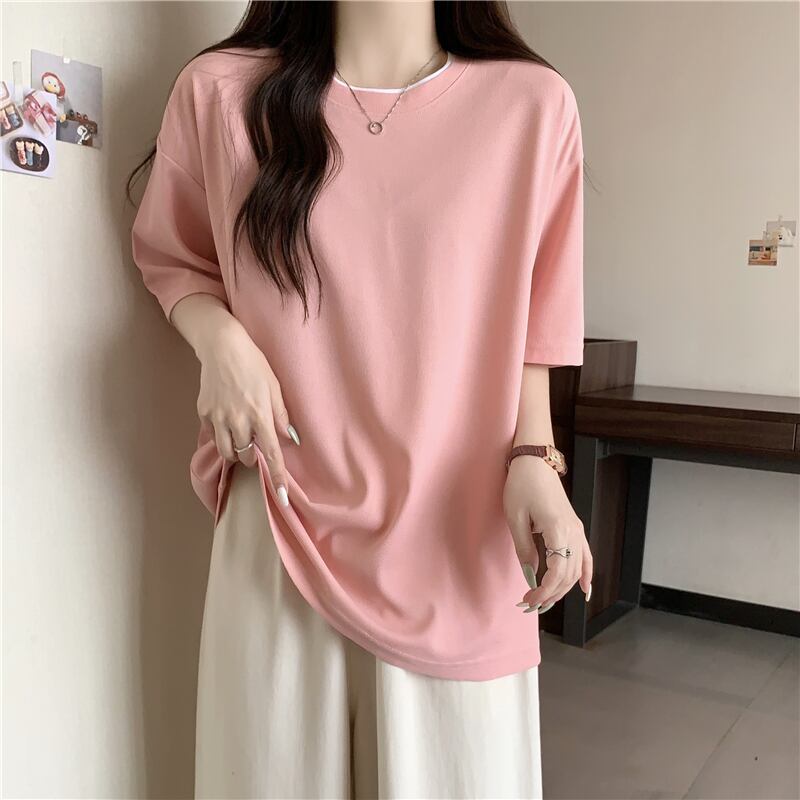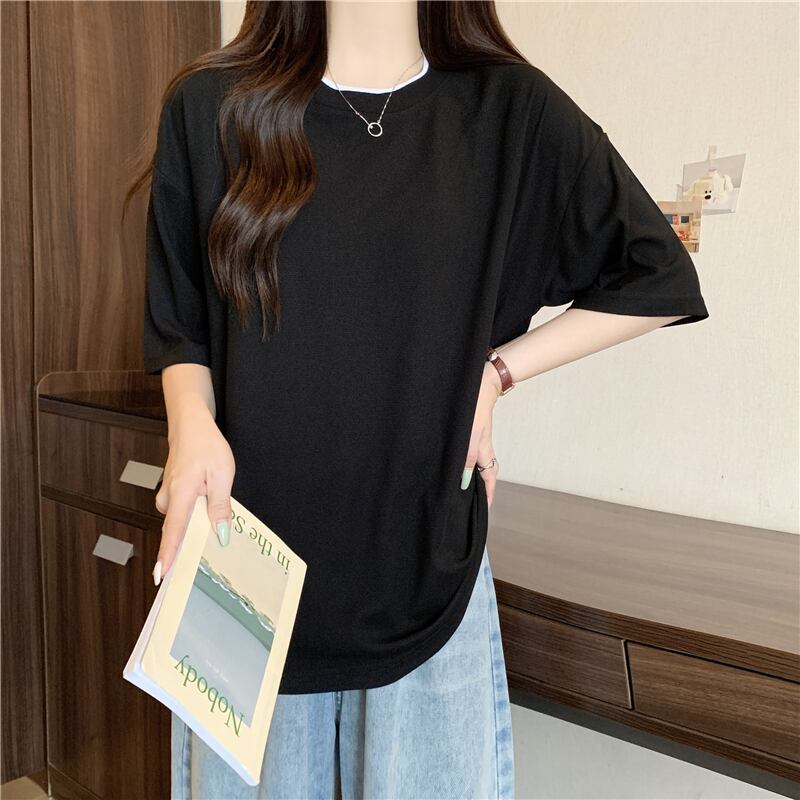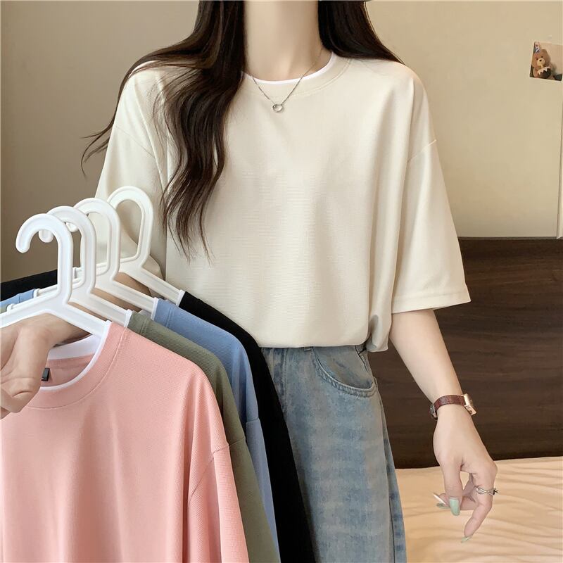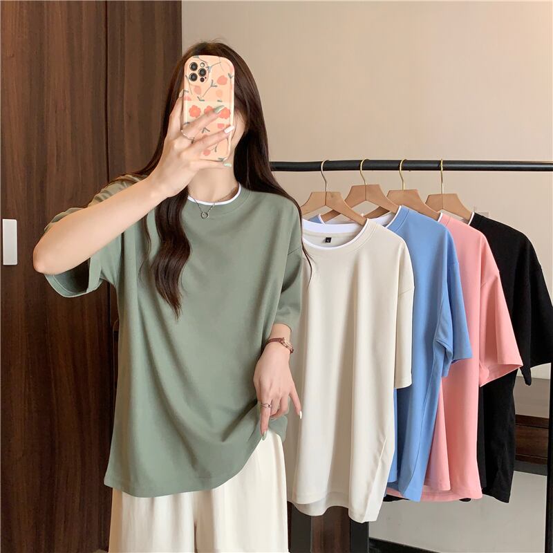 韓国偽二枚 Tシャツ夏服 Tシャツ原宿グラフィックソリッドルーズ半袖 y2k トップ ショート ハーフスリーブ かわいい サマー 夏物 ソリッドカラー