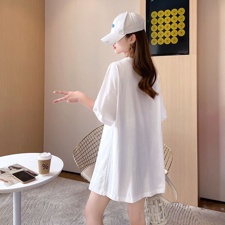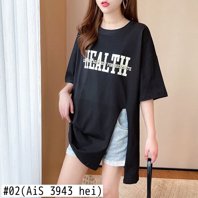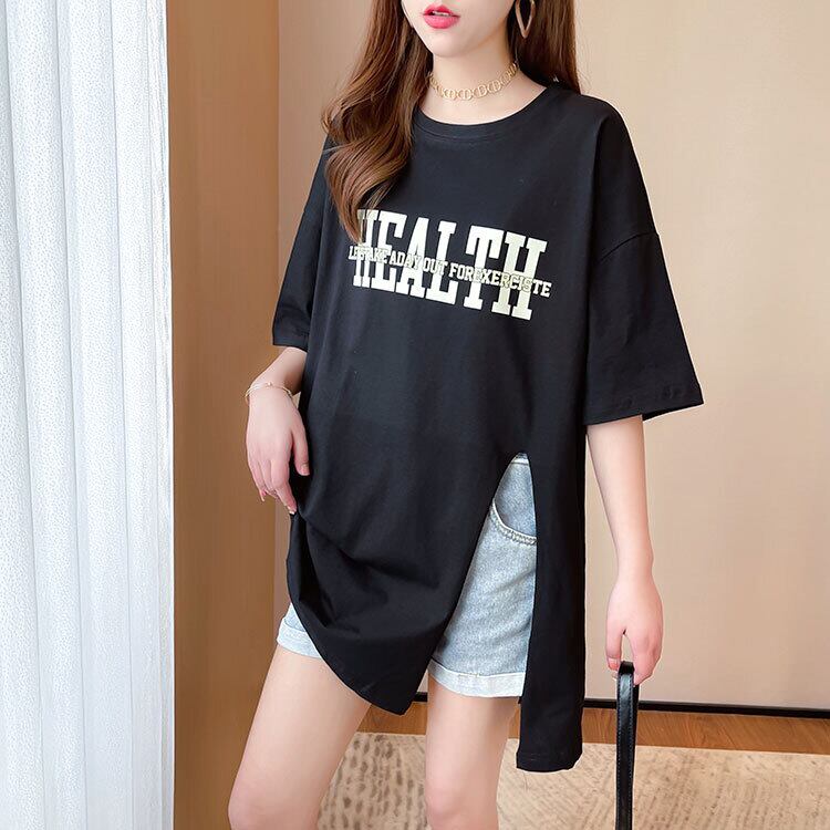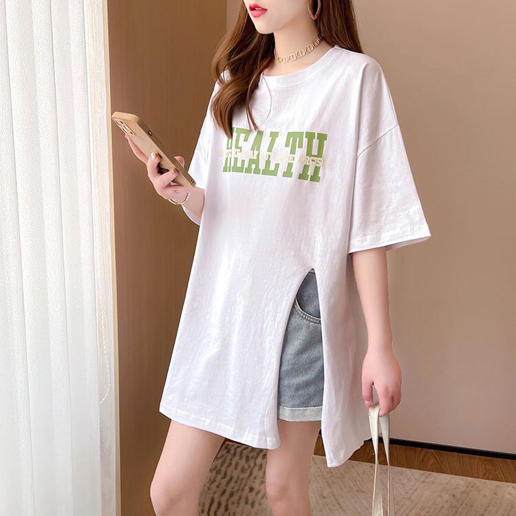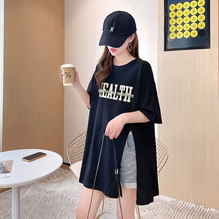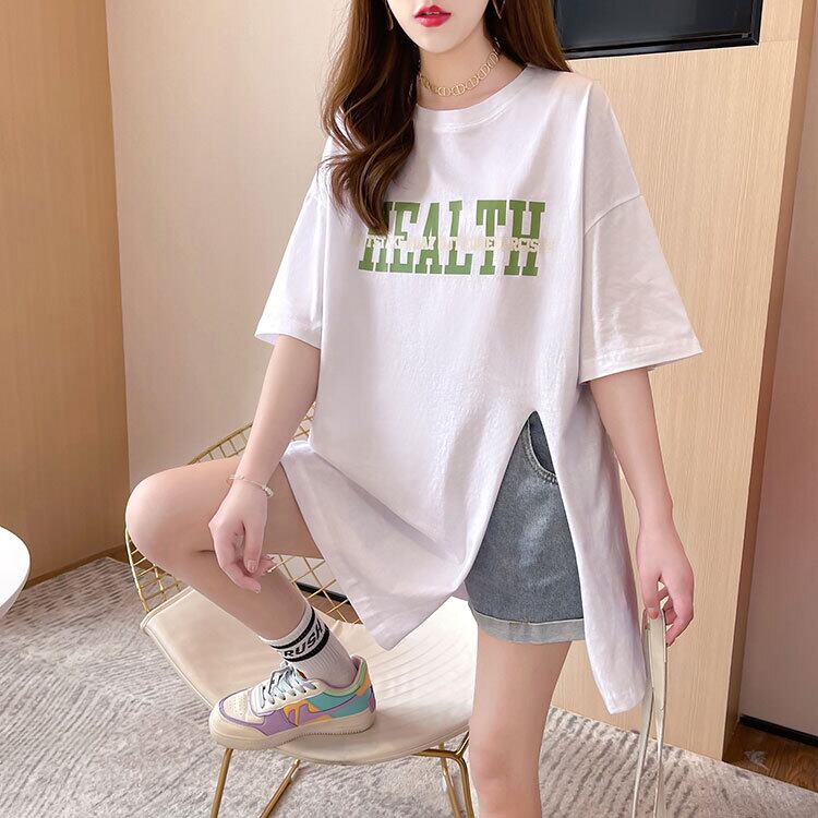 原宿特大純綿サイドスプリットロング tシャツ韓国夏グラフィックレタープリント tシャツ y2k トップストリート コットン かわいい サマー 夏物 ピュア