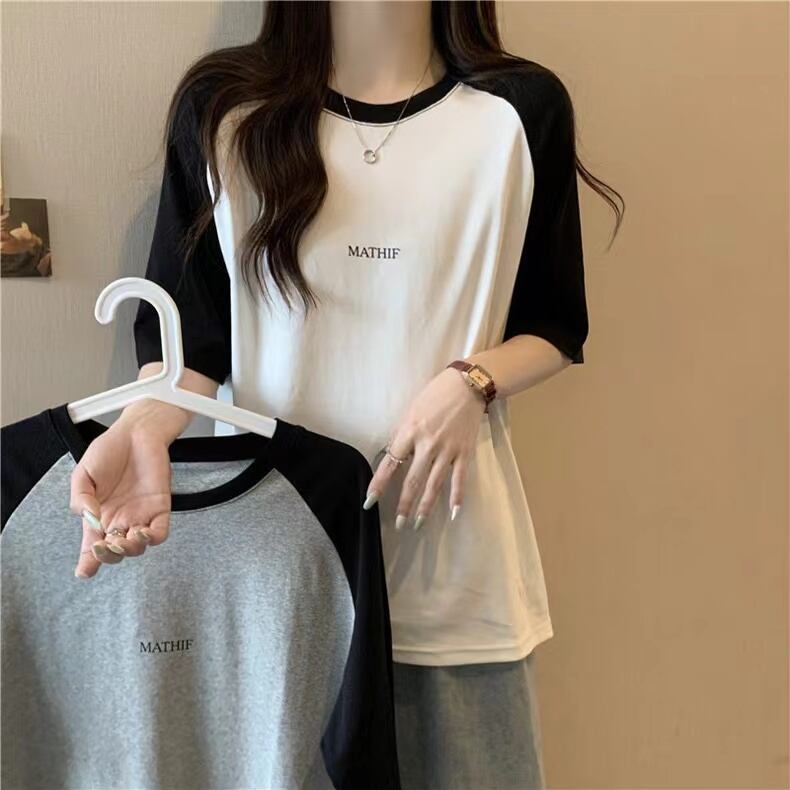 韓国純粋綿カラーステッチ Tシャツ夏 Tシャツ原宿レタールーズ半袖トップス服 ショート コットン ハーフスリーブ かわいい サマー 夏物 ピュア