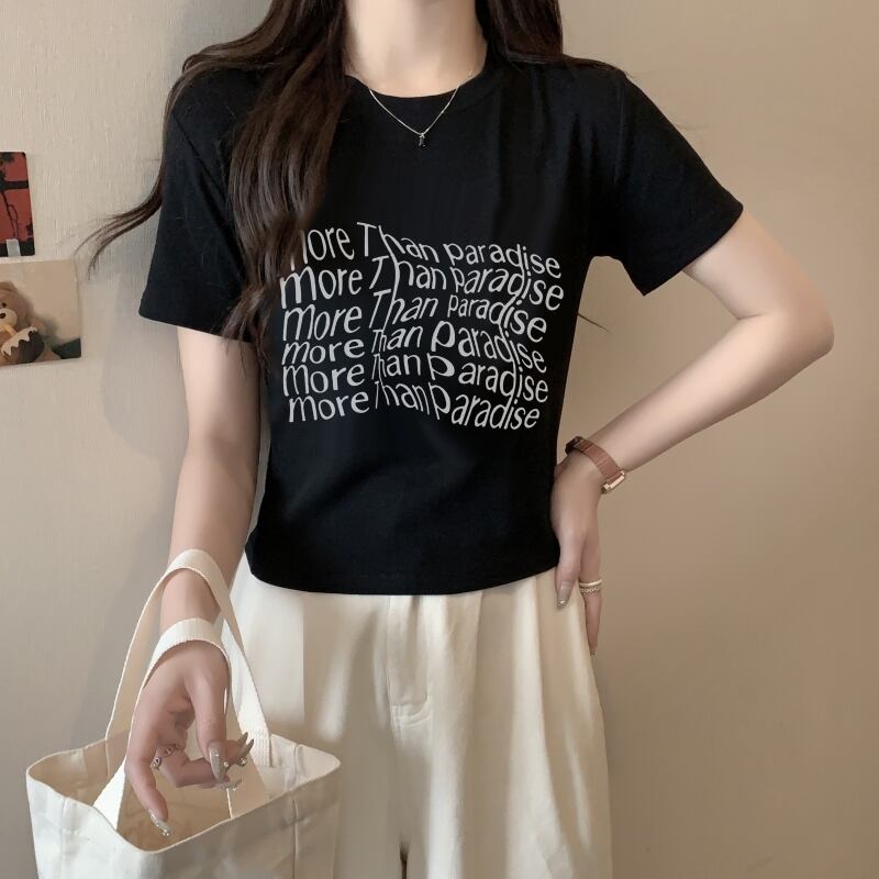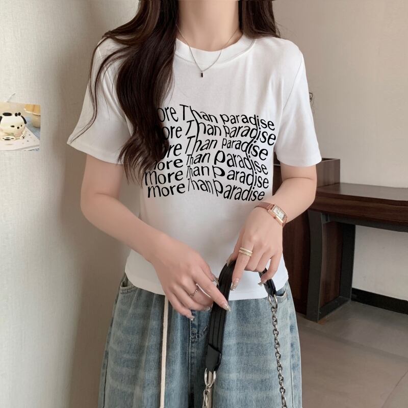 夏グラフィック Tシャツ半袖クロップトップス綿手紙美的服シックスリム y2k トップストリート ショート コットン ハーフスリーブ サマー 夏物