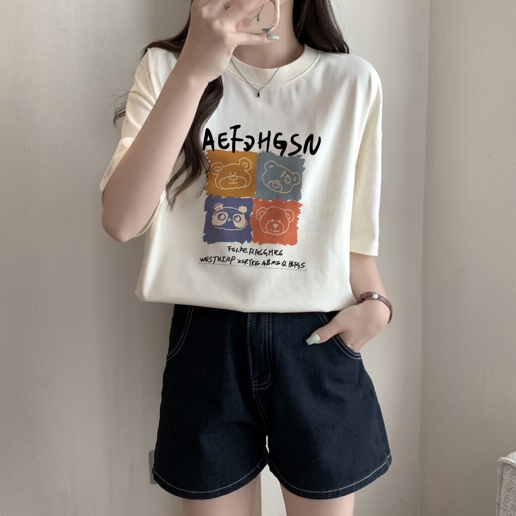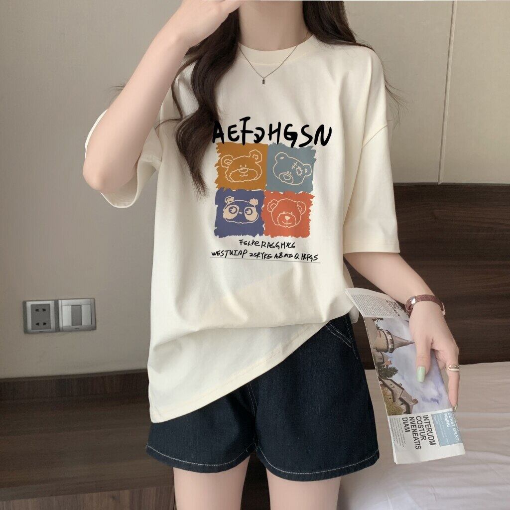 特大面白いグラフィック漫画 Tシャツ夏純粋綿 Tシャツ O ネックロング y2k トップストリート コットン サマー 夏物 Oネック ピュア