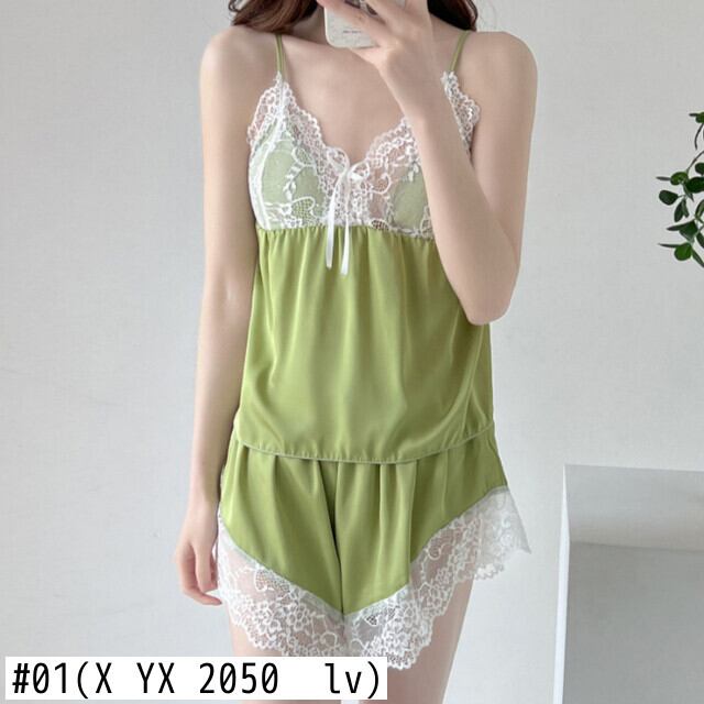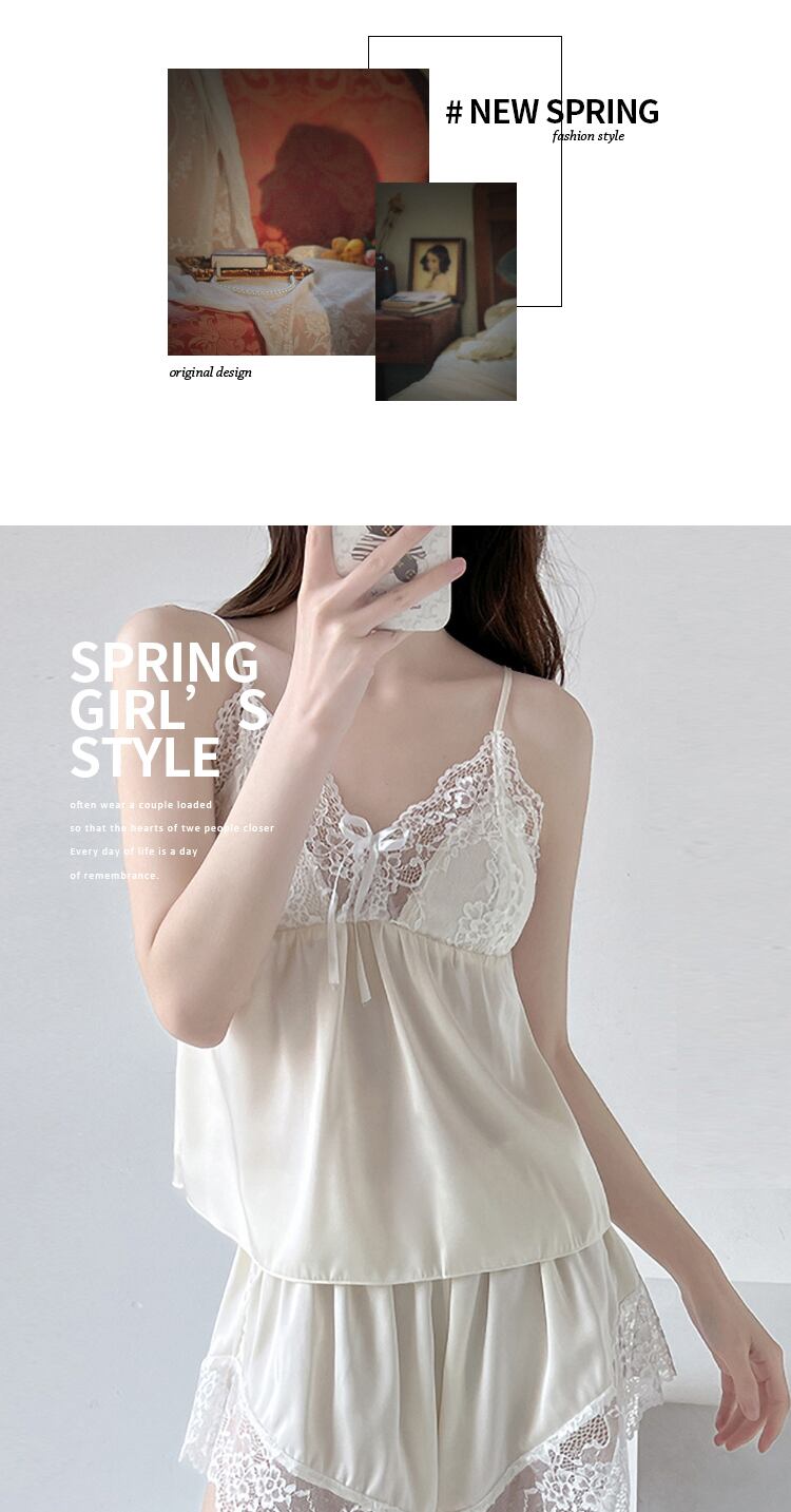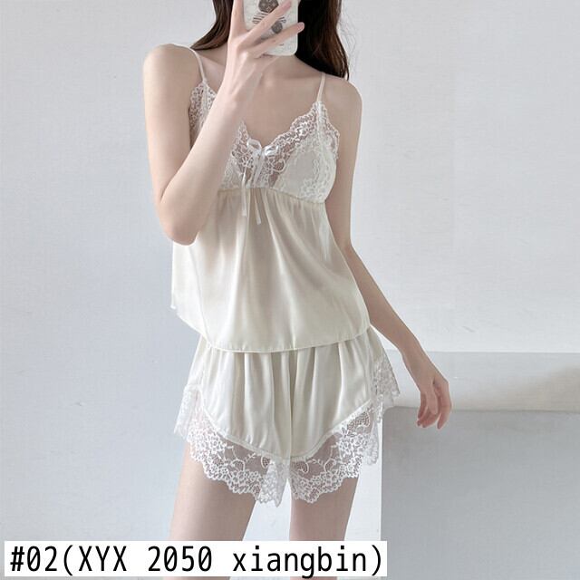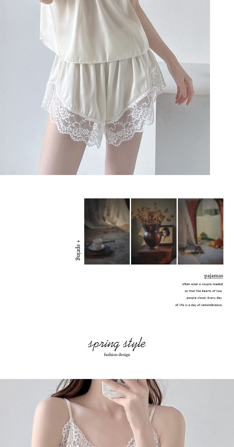 夏パジャマセクシーレースプリントショートセットパジャマ韓国パジャマセット甘い半袖 V ネック & ショーツスパースター ハーフスリーブ 大人ガーリー スウィート キュート カジュアル サマー 夏物 ブルマー Vネック