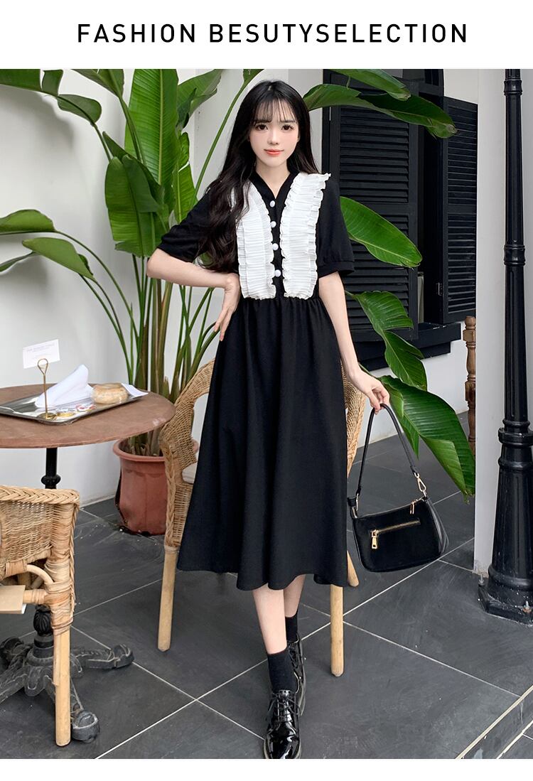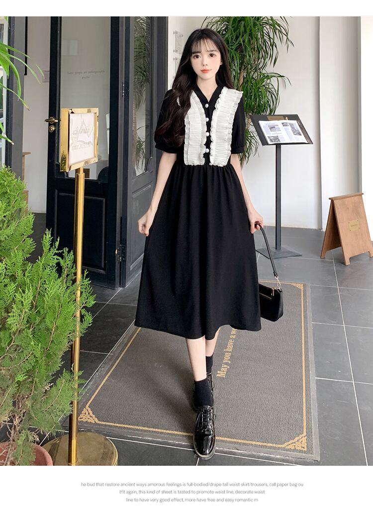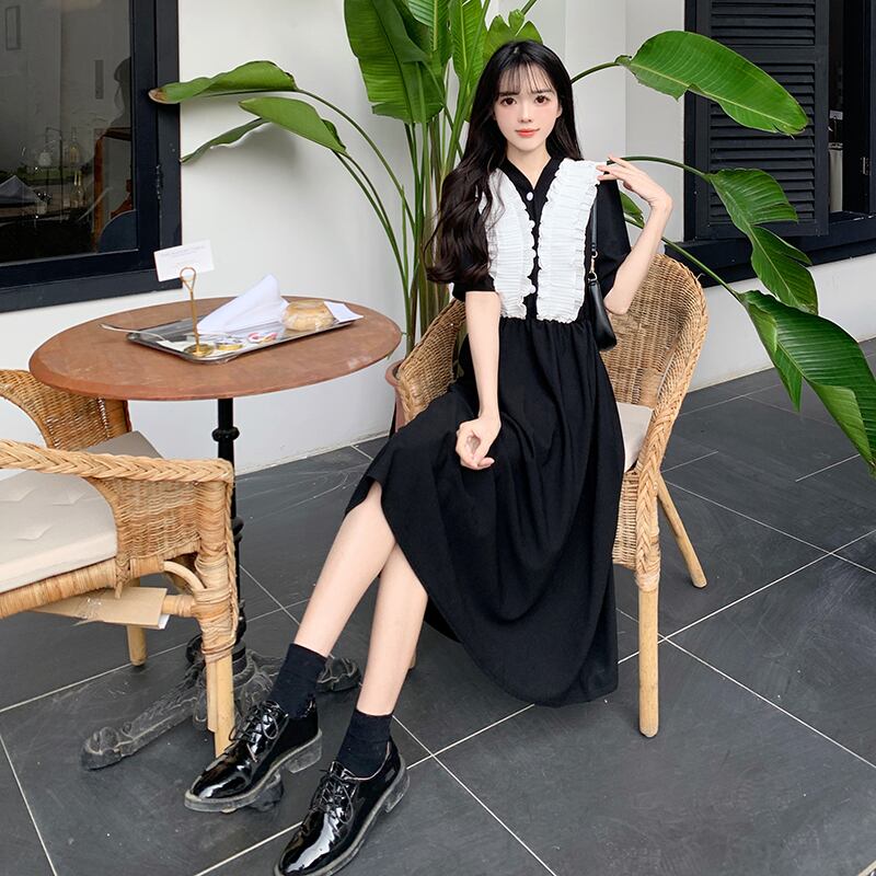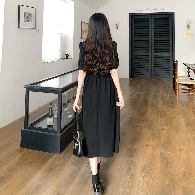 フレンチスタイルロングドレス夏ボディコンドレスシフォンスプライシングY2k黒ストリートドレス ブラック サマー 夏物