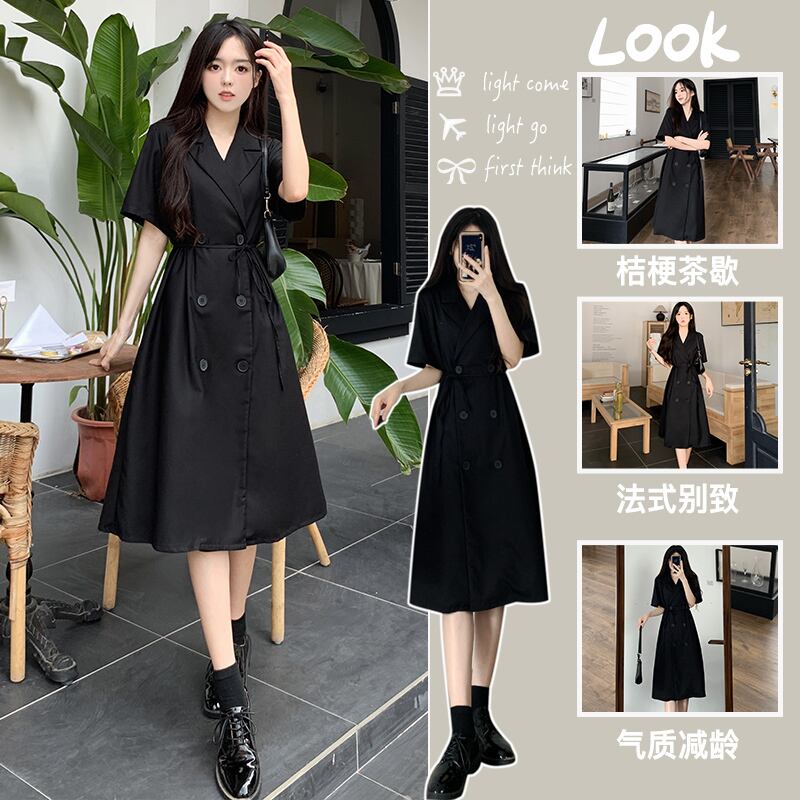 オフィスレディ半袖スーツドレスフレンチスタイルダブルブレストボディコンドレス夏黒ドレスvestidos ショート ブラック ハーフスリーブ サマー 夏物 ソリッドカラー 会社 学校 通勤や通学にも