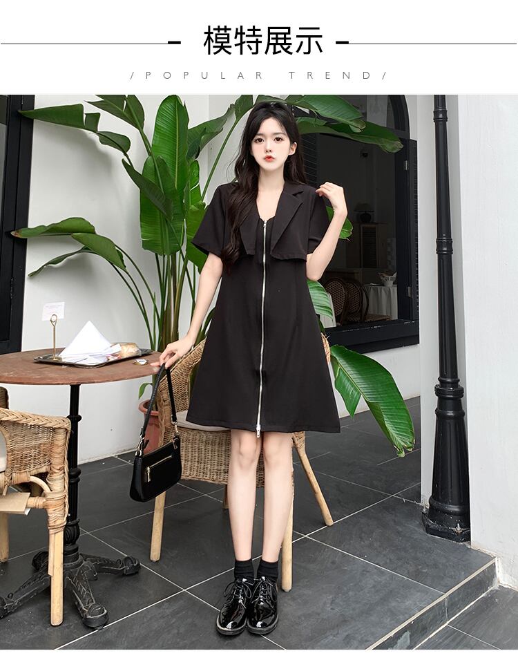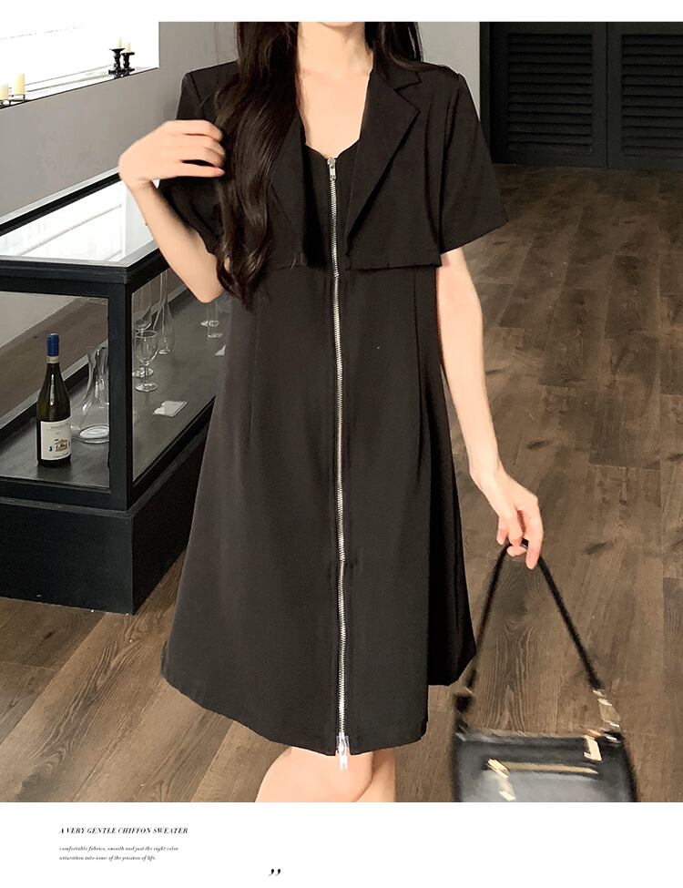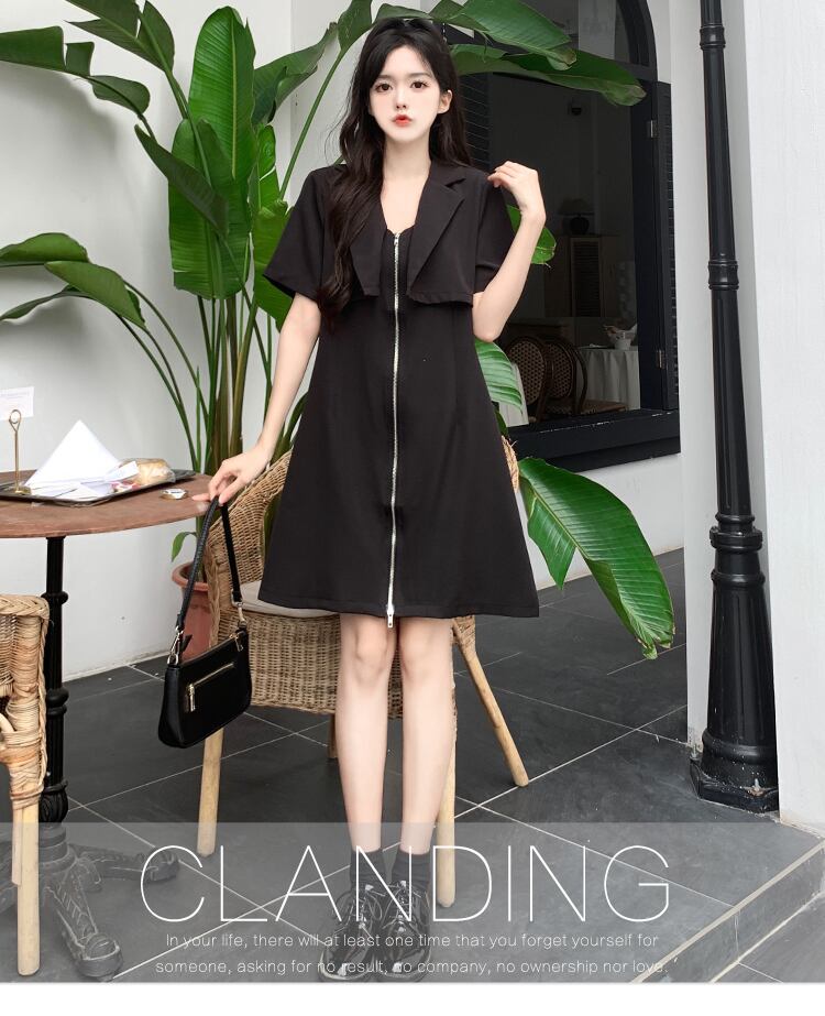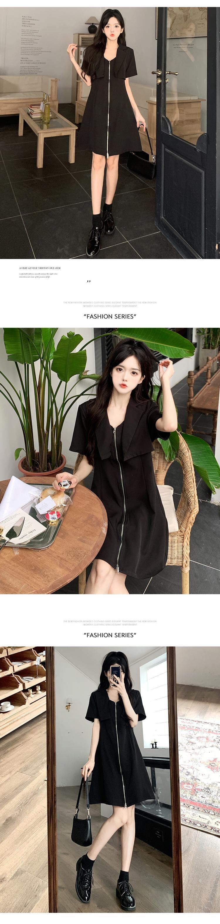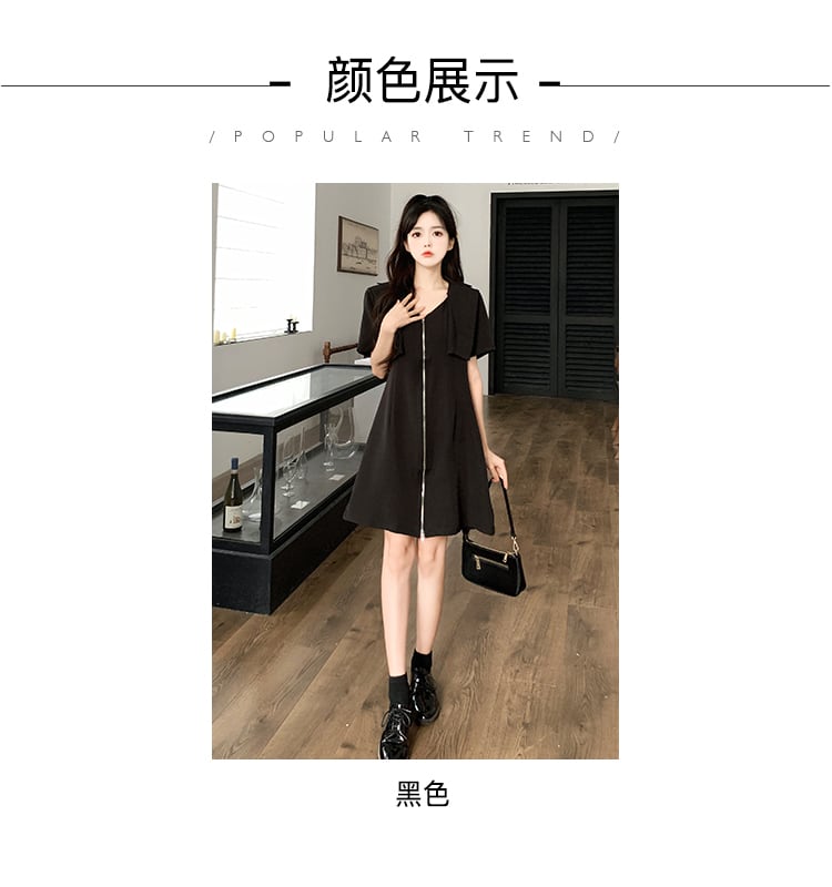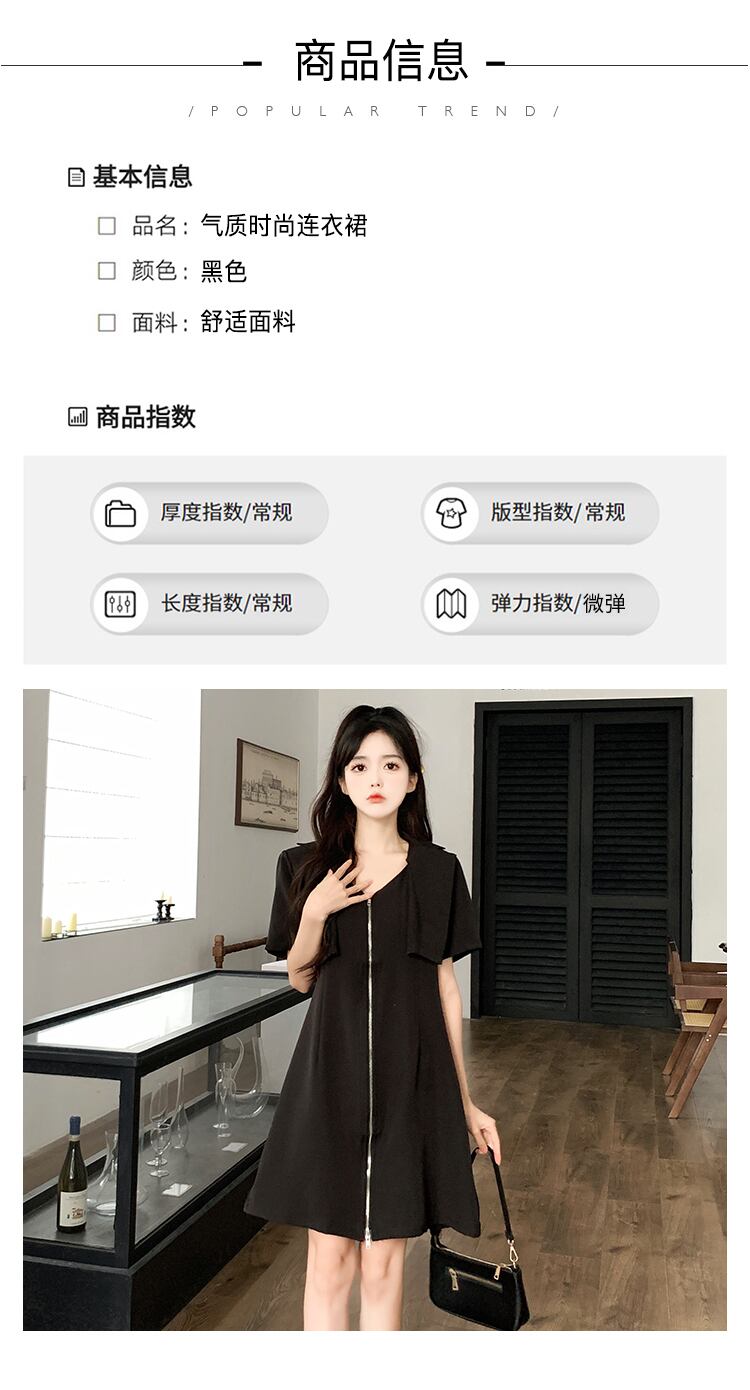 フレンチスタイル甘いジッパー V ネックミニドレスボディコンドレス半袖ストリート夏黒ドレス ショート ブラック ハーフスリーブ 大人ガーリー スウィート キュート カジュアル サマー 夏物 Vネック ソリッドカラー