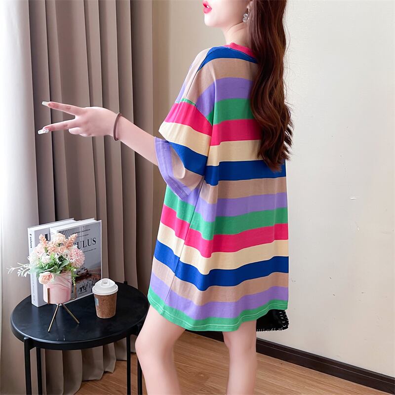 韓国カラーステッチストライプ Tシャツ夏 Tシャツ原宿グラフィック半袖 y2k トップスストリート ショート ハーフスリーブ かわいい サマー 夏物