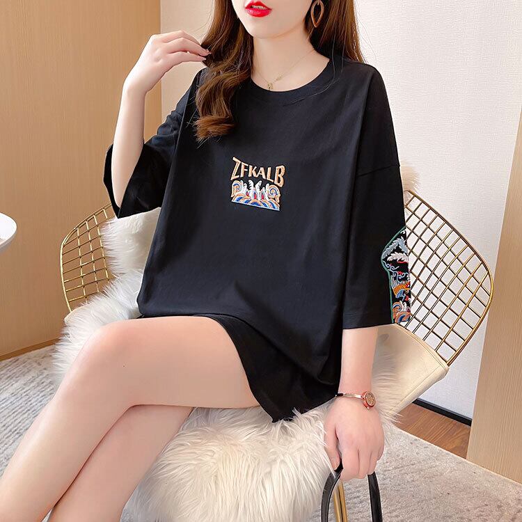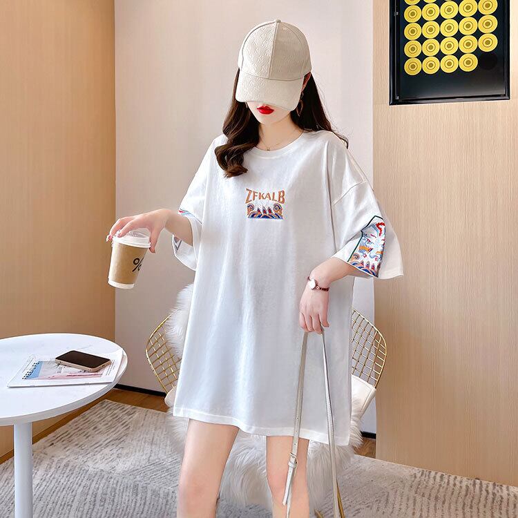夏コットン Tシャツ底入れ tシャツ韓国面白い文字刺繍半袖特大 y2k トップ tシャツ ショート ハーフスリーブ サマー 夏物