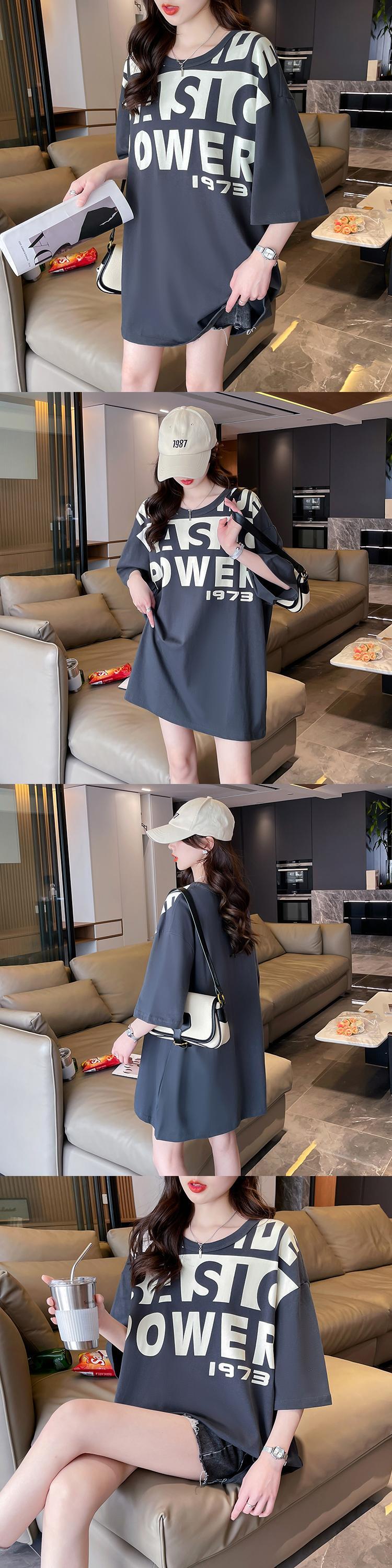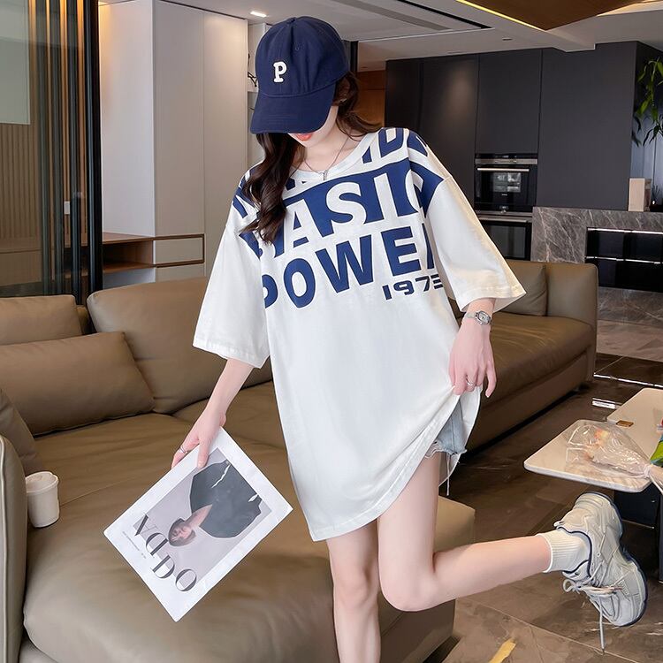 夏レタープリントコットン tシャツ y2k トップス韓国特大長袖 Tシャツ原宿ユニセックス Tシャツ ロング かわいい サマー 夏物