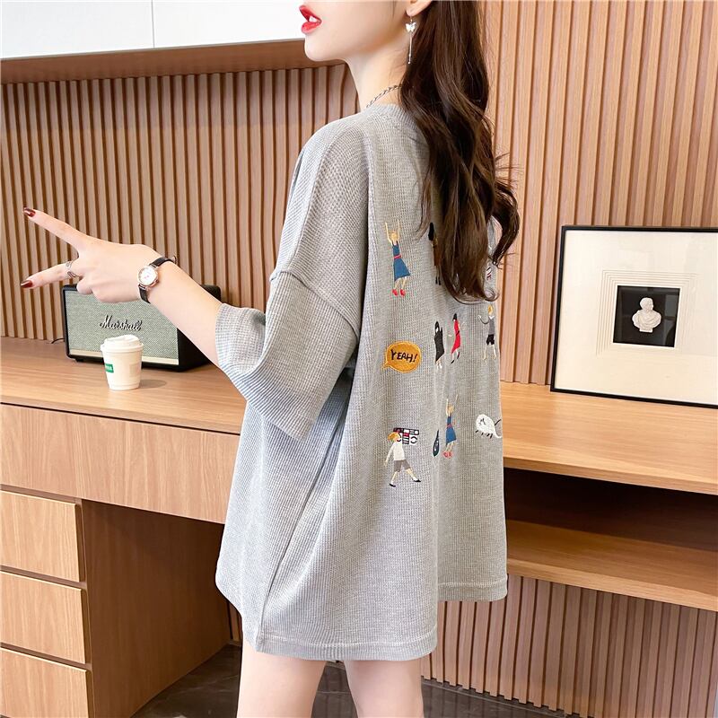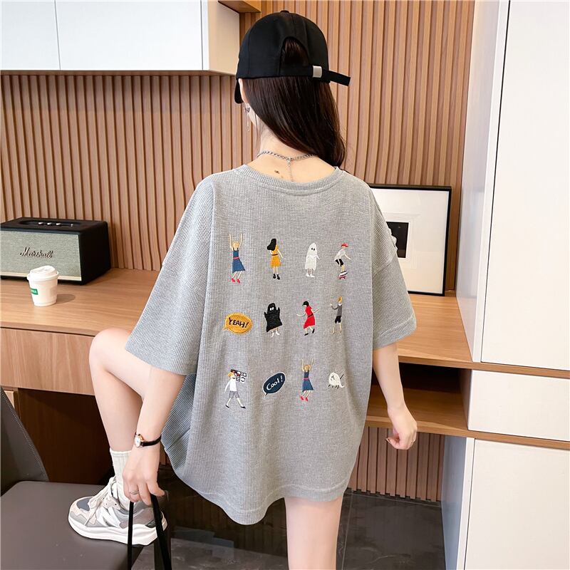 夏面白い漫画刺繍 Tシャツ韓国半袖 Tシャツ原宿特大 tシャツストリート y2k トップス かわいい サマー 夏物
