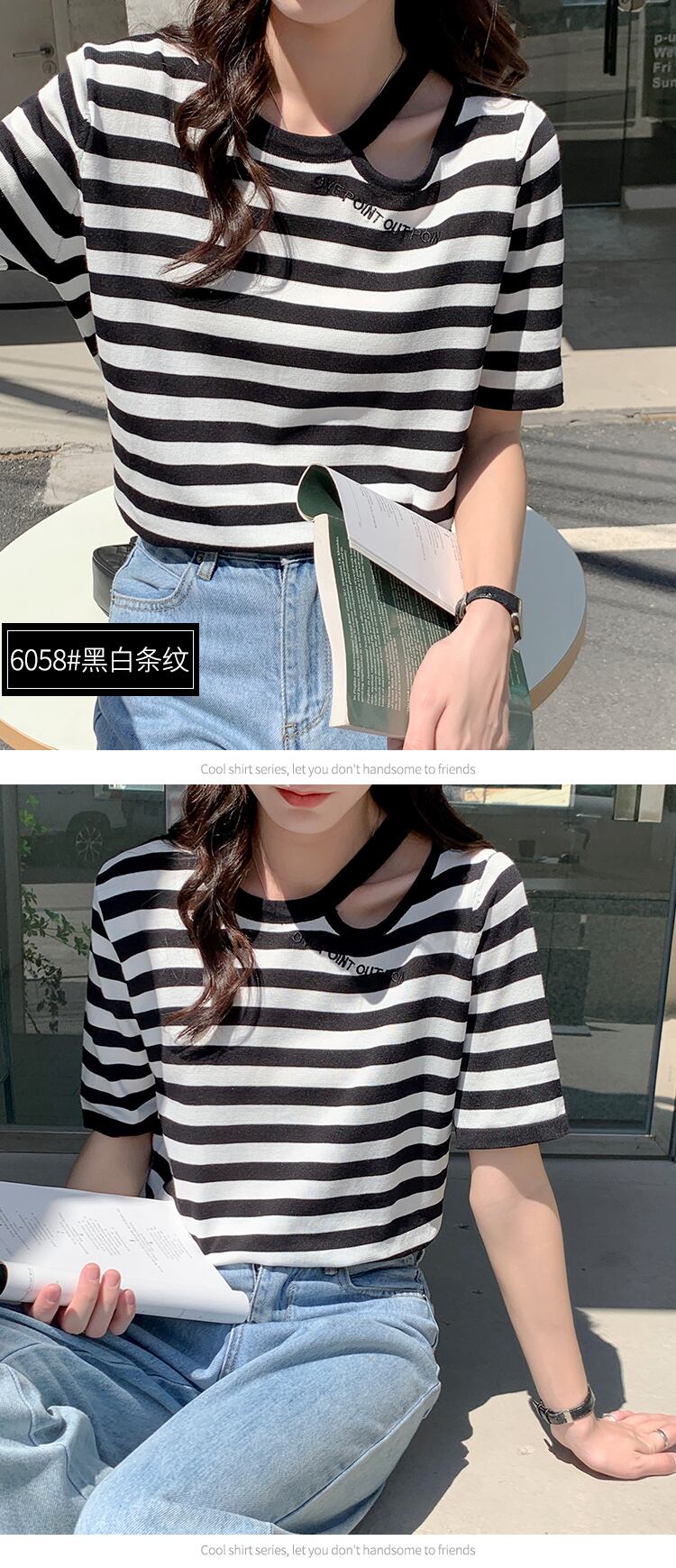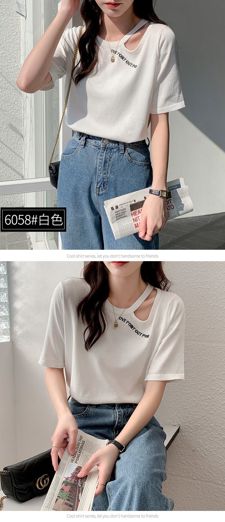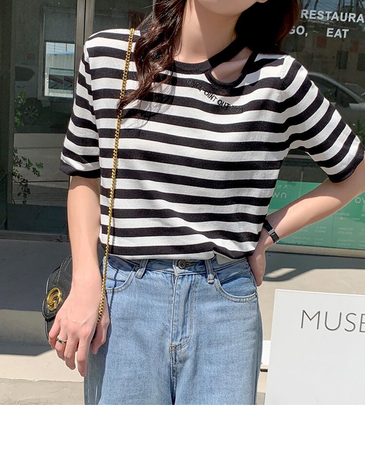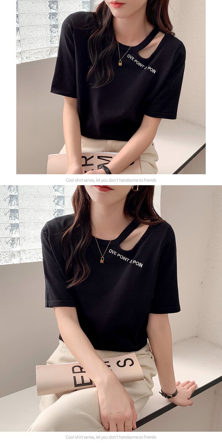 夏手紙刺繍ニット Tシャツルーズ半袖穴 Tシャツ白トップス韓国ファッションシンプル Tシャツ ショート ホワイト ハーフスリーブ サマー 夏物