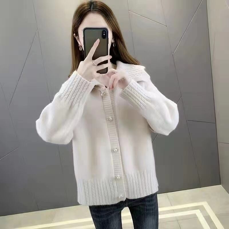 秋新ベージュ V ネックソリッドカーディガンプレッピースタイルルーズセーター気質ニットジャケット Y2k ストリート オータム 秋物 Vネック ソリッドカラー