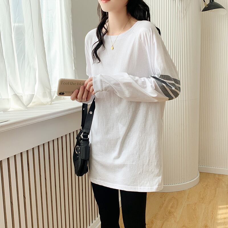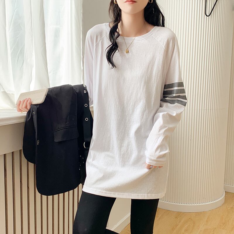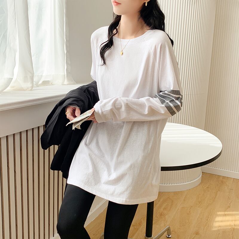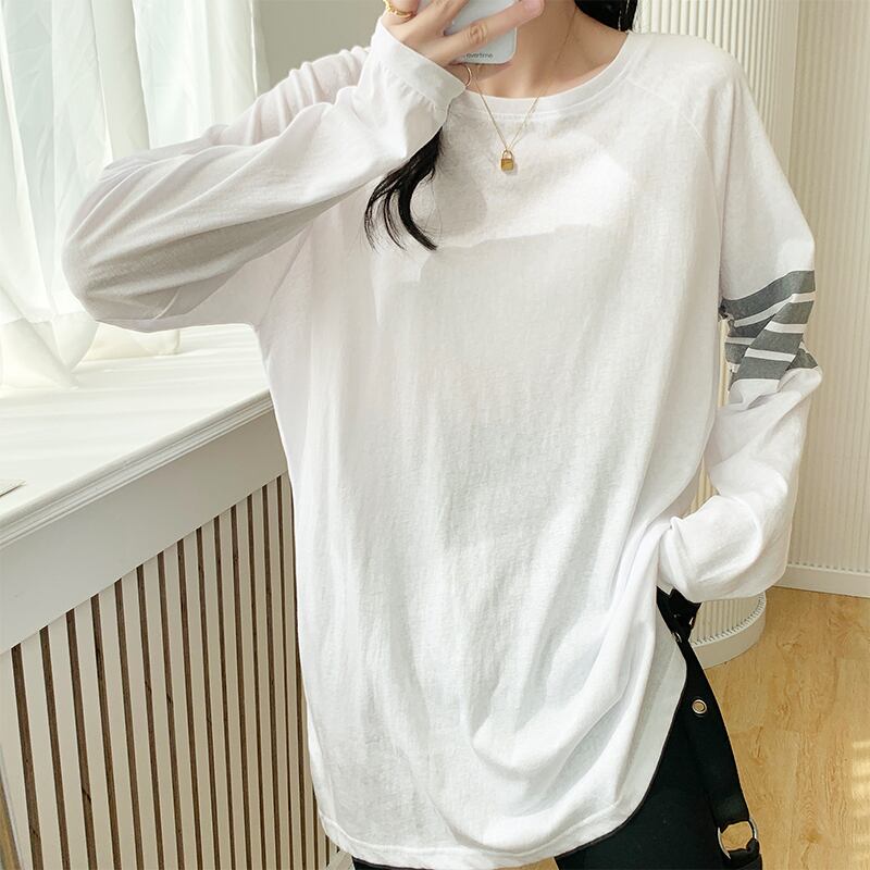 秋純粋綿シンプル特大 tシャツ原宿ロング Tシャツストライプ Tシャツ白長袖 y2k トップス ホワイト コットン かわいい オータム 秋物 ピュア ソリッドカラー