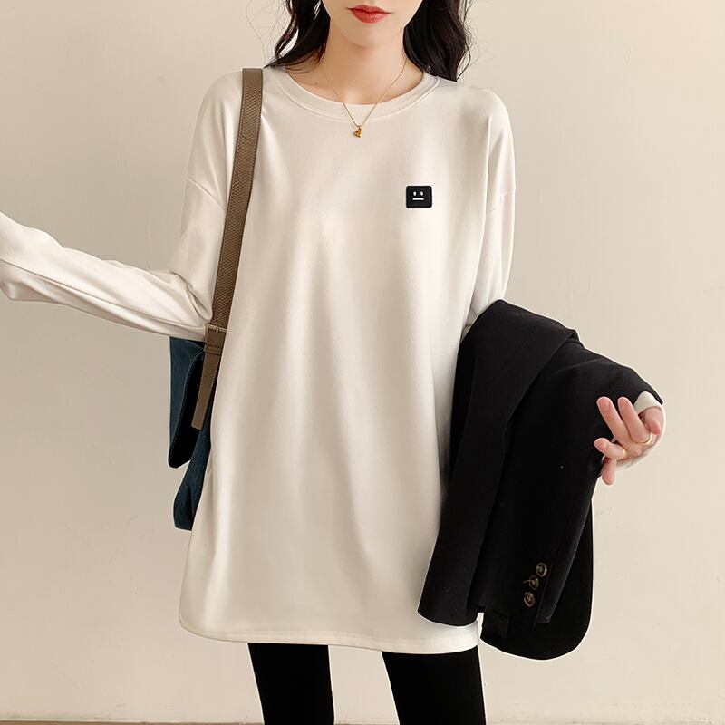 春秋おかしいプリント特大 tシャツ原宿ロング Tシャツ純粋綿 Tシャツ白長袖 y2k トップス ホワイト コットン かわいい スプリング 春物 オータム 秋物 ピュア