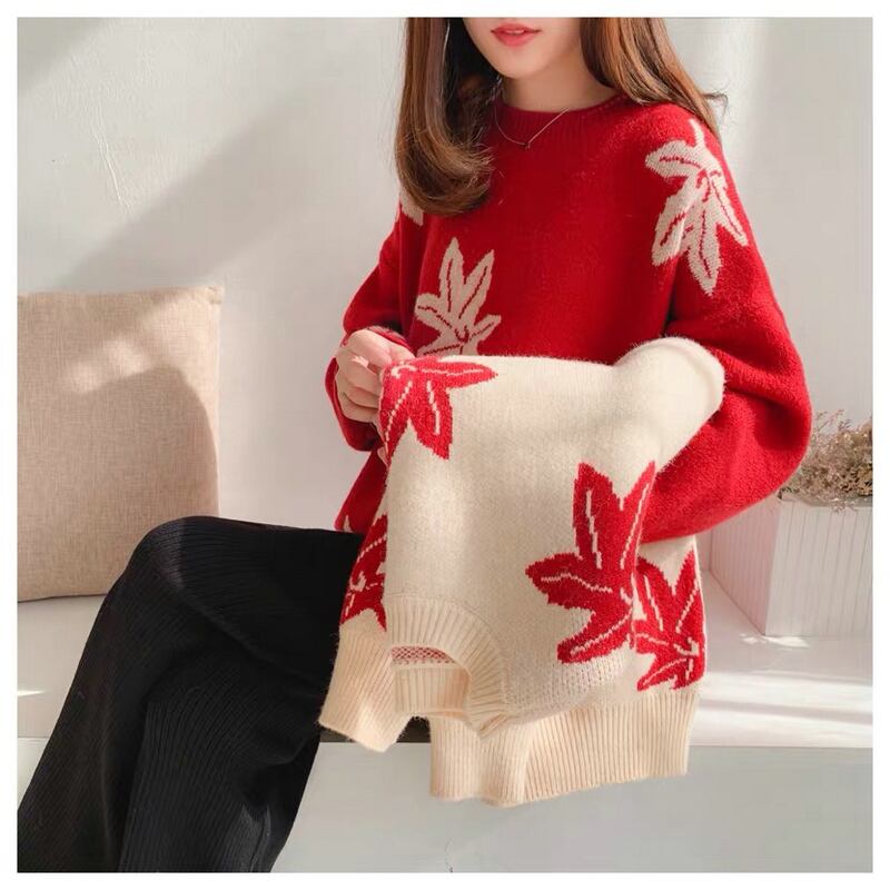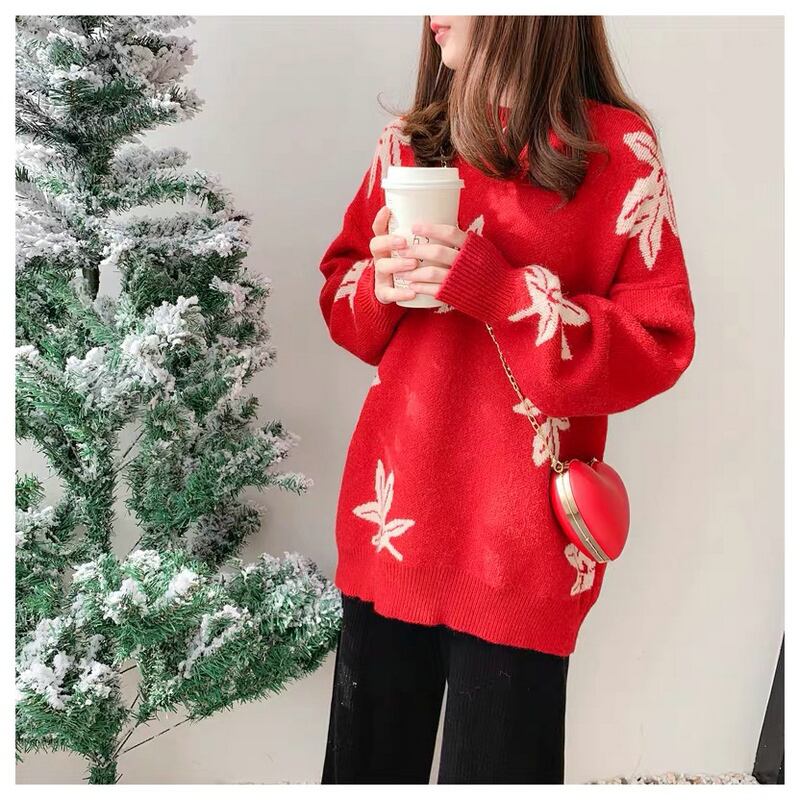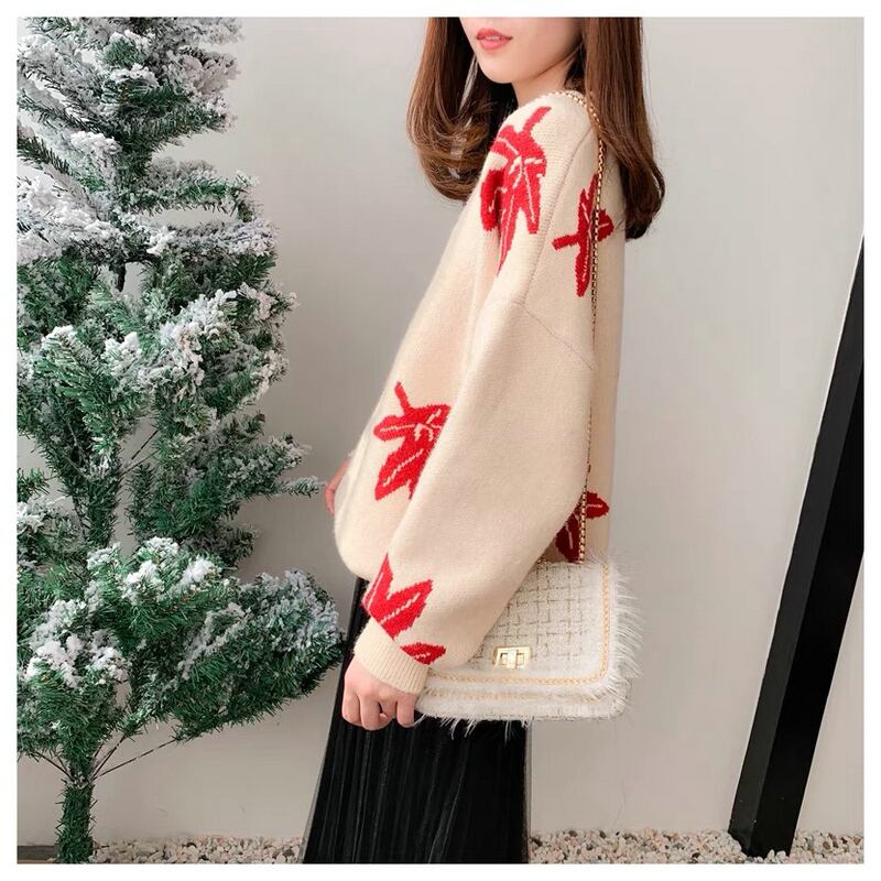 クリスマスセータープルオーバー秋ルーズ O ネックニットセーターパターンプリントカップルジャンパーストリートトップス オータム 秋物 Oネック