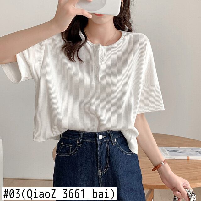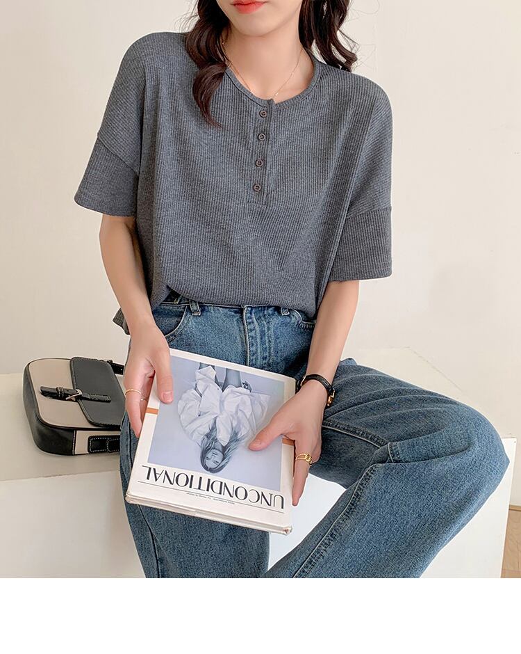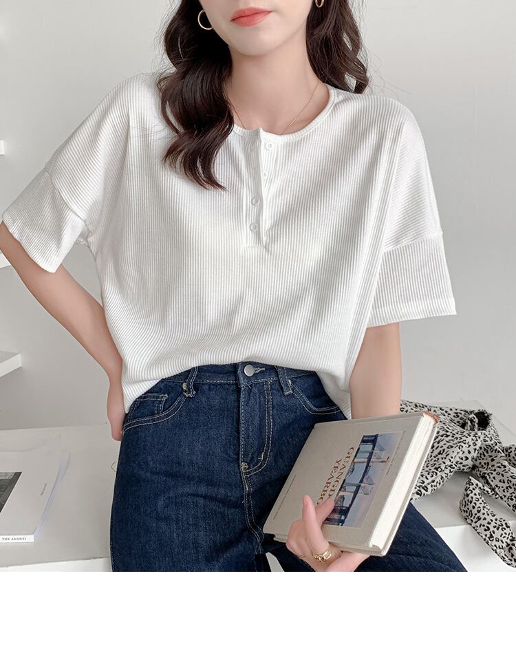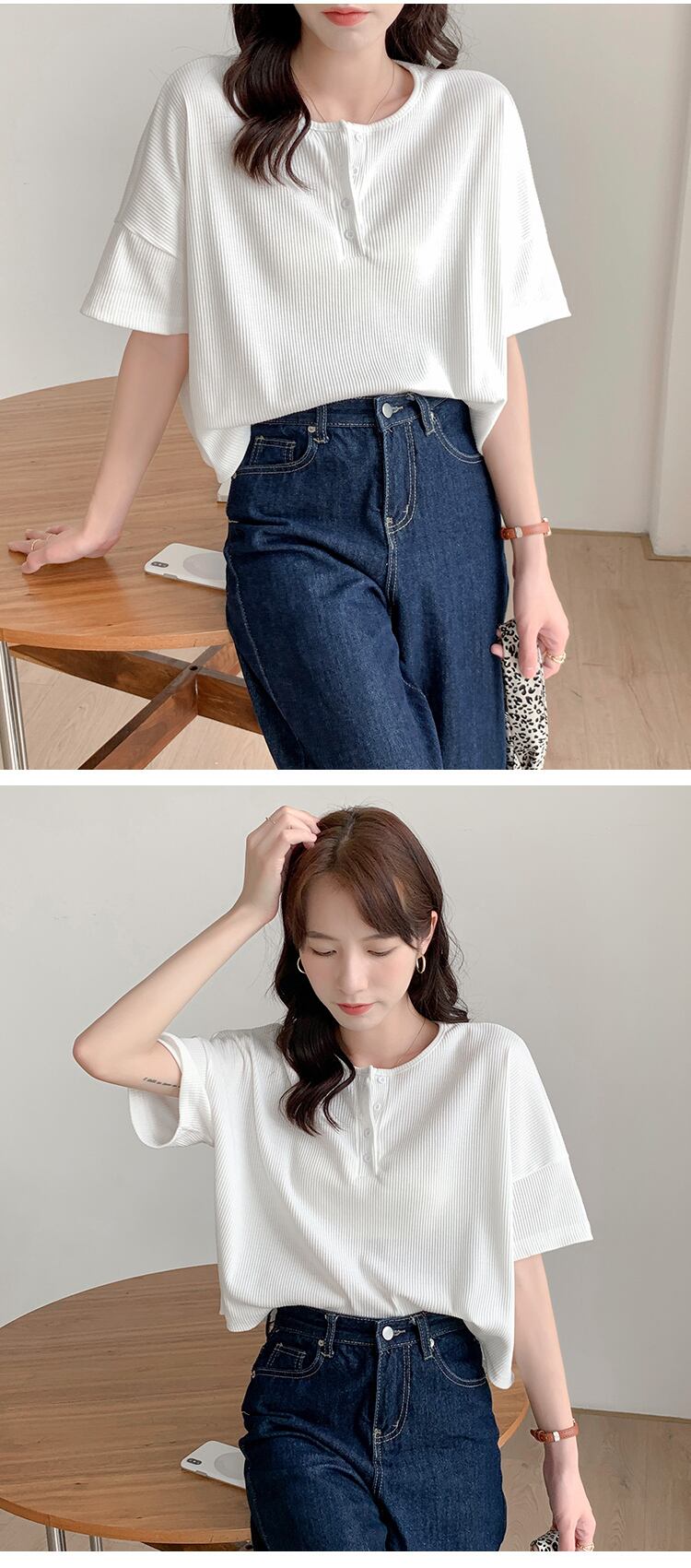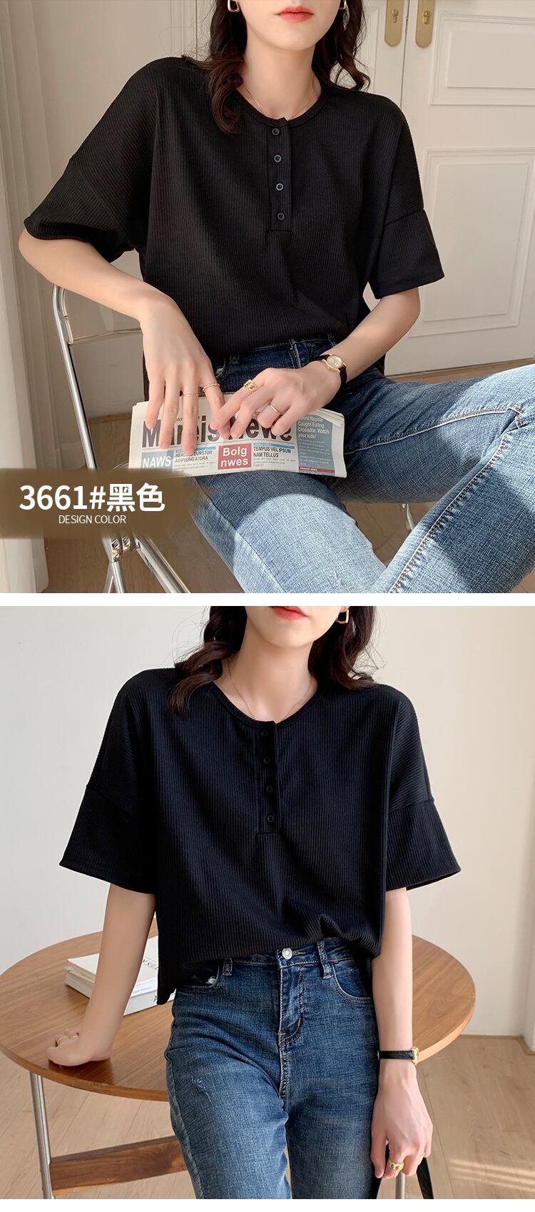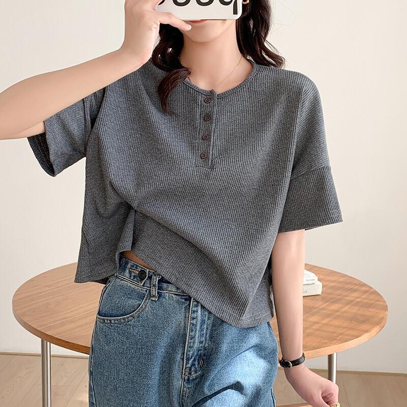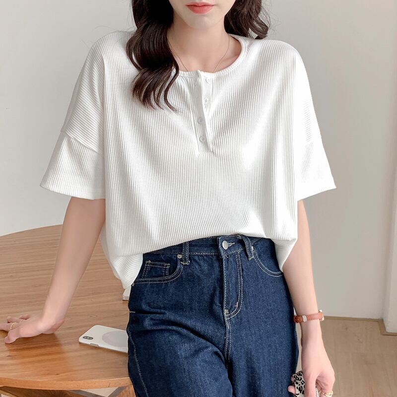 原宿綿半袖 Tシャツ夏オールマッチソリッドボタン tシャツ服カジュアル特大ソフトグレートップス ショート コットン ハーフスリーブ かわいい サマー 夏物 ソリッドカラー