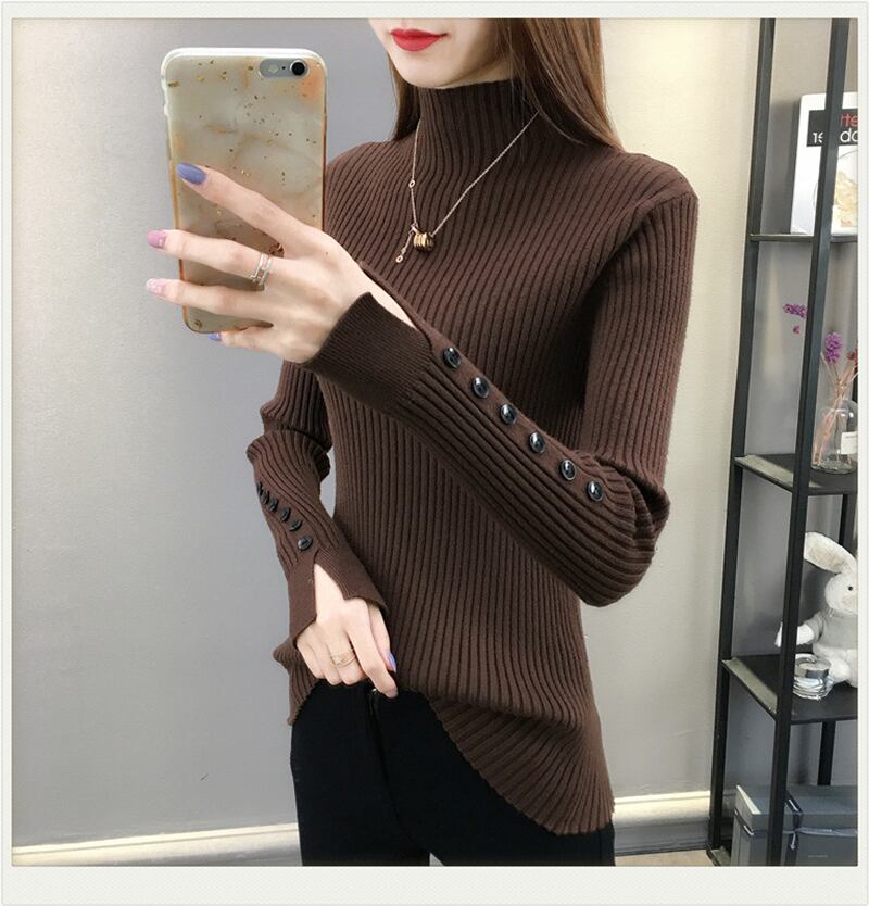 ハーフタートルネックセータープルオーバーカジュアル秋冬ボタン o ネックセータースリムニット底ジャンパートップス オータム 秋物 ウィンター 冬物 Oネック ソリッドカラー