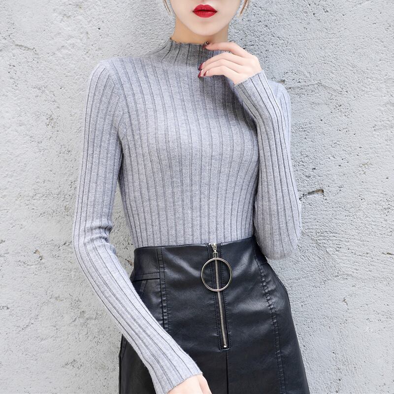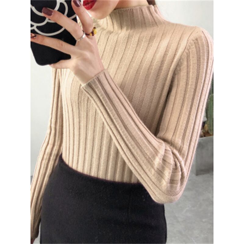 秋冬ハーフタートルネックセーター基本ニットy2kトップススリムプルオーバーシンプルシックジャンパー オータム 秋物 ウィンター 冬物 ソリッドカラー