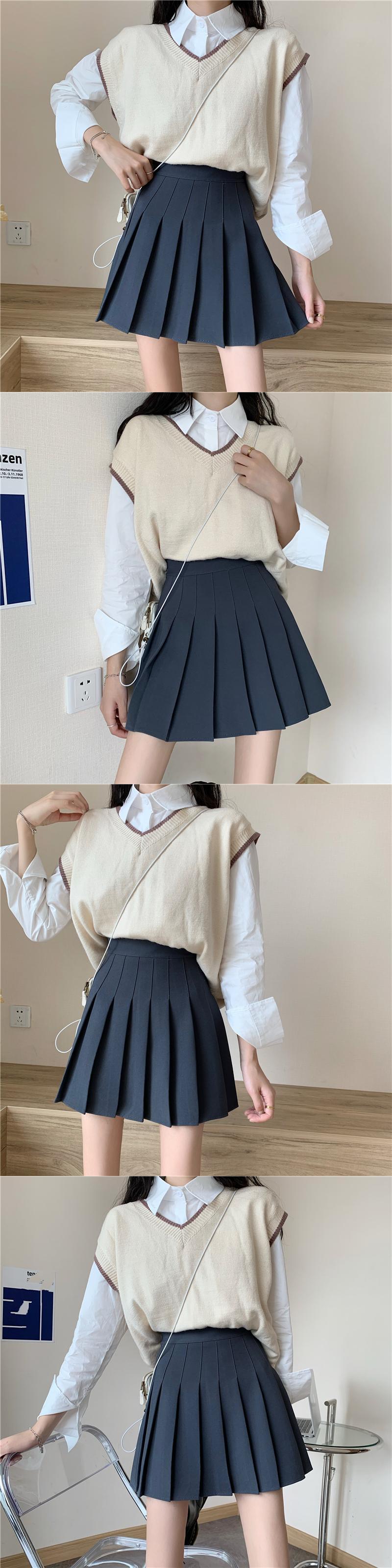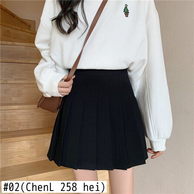 秋グレースカート服ウエスト原宿スタイルルーズ黒ミニプリーツスカート女子高生 ブラック かわいい オータム 秋物